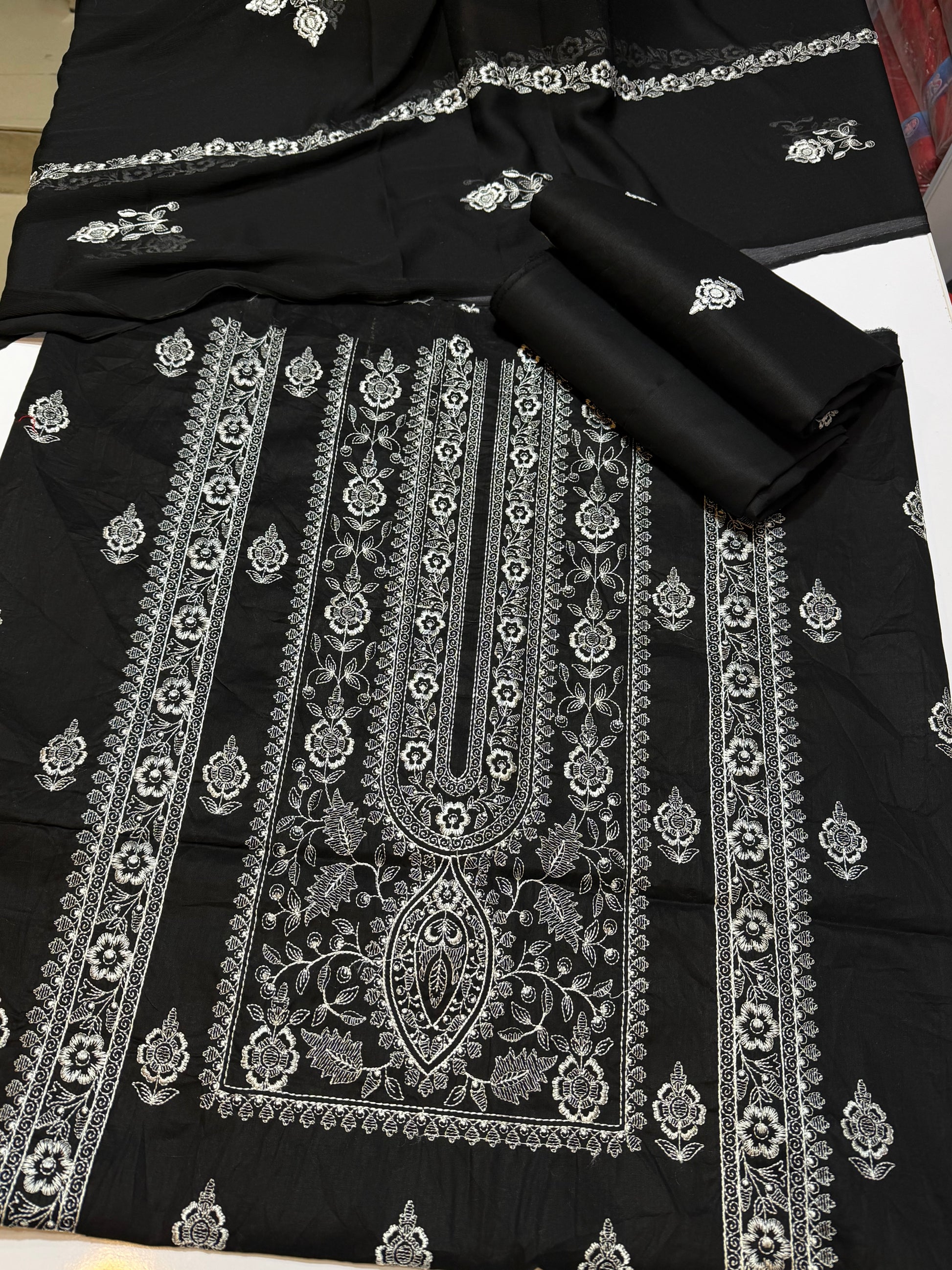 3 Piece Embroidered Lawn Suit With Chiffon Dupatta | Black
