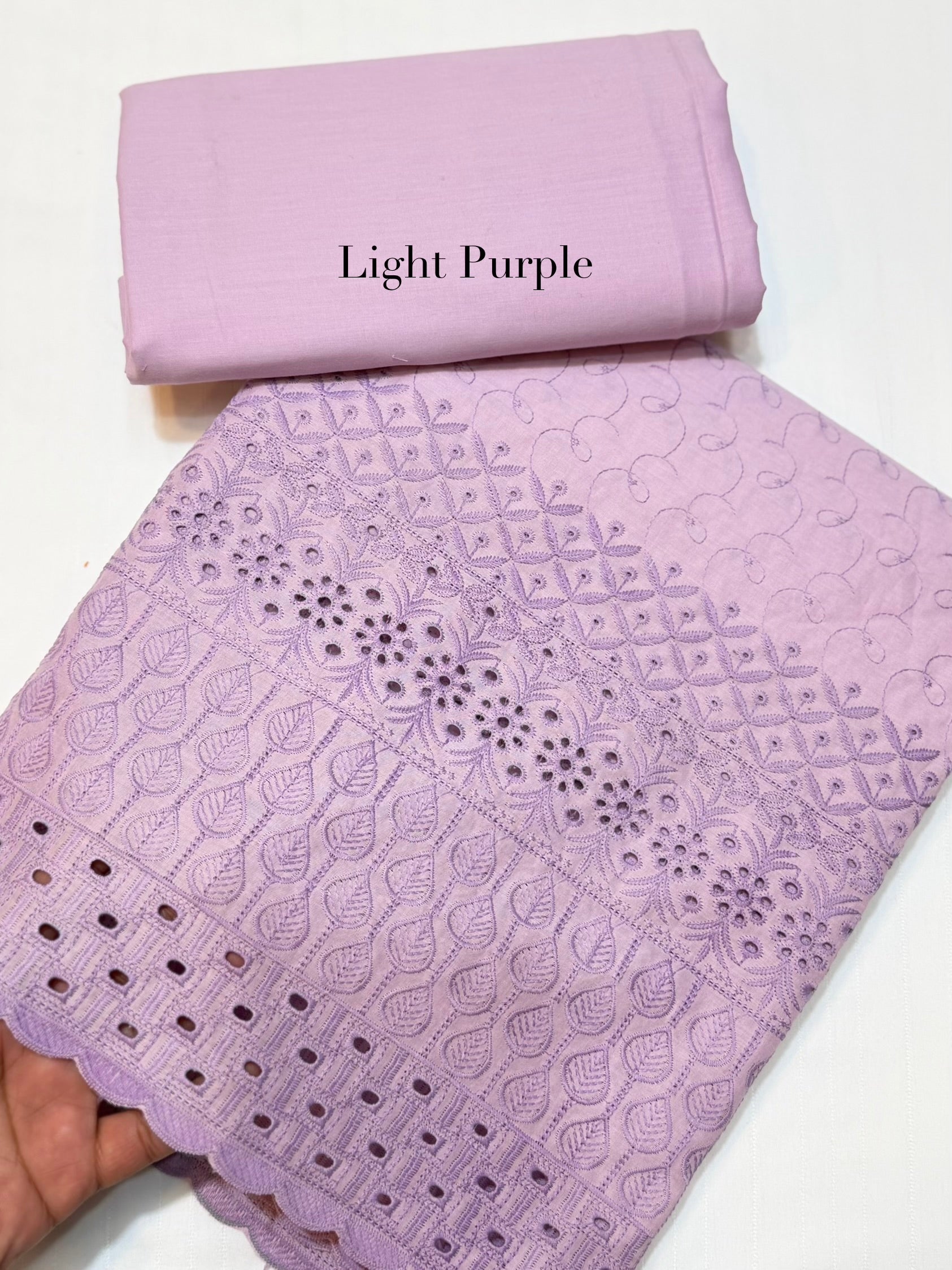 Chikankari Lawn 2 Piece Suit Daman Bore Long Length Suit | Light Purple