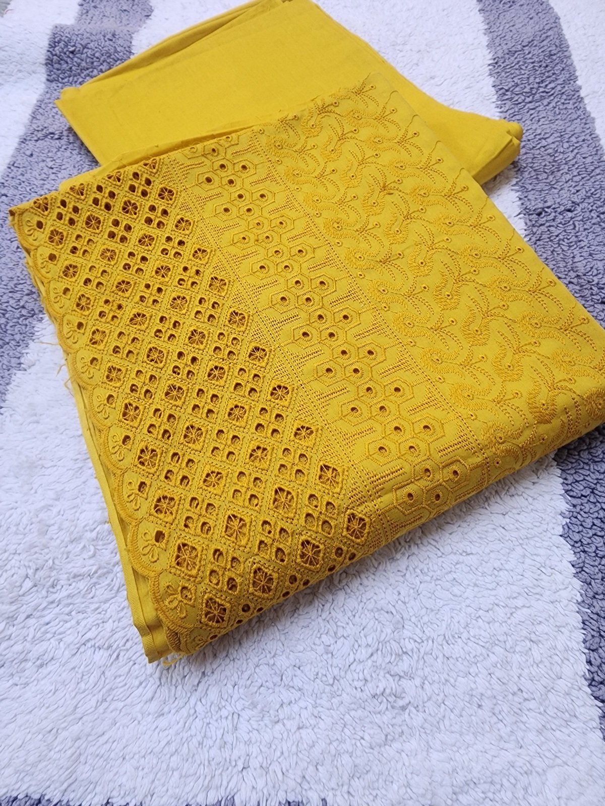 Chikankari Lawn 2 Piece Suit Daman Bore Long Length Suit | Yellow