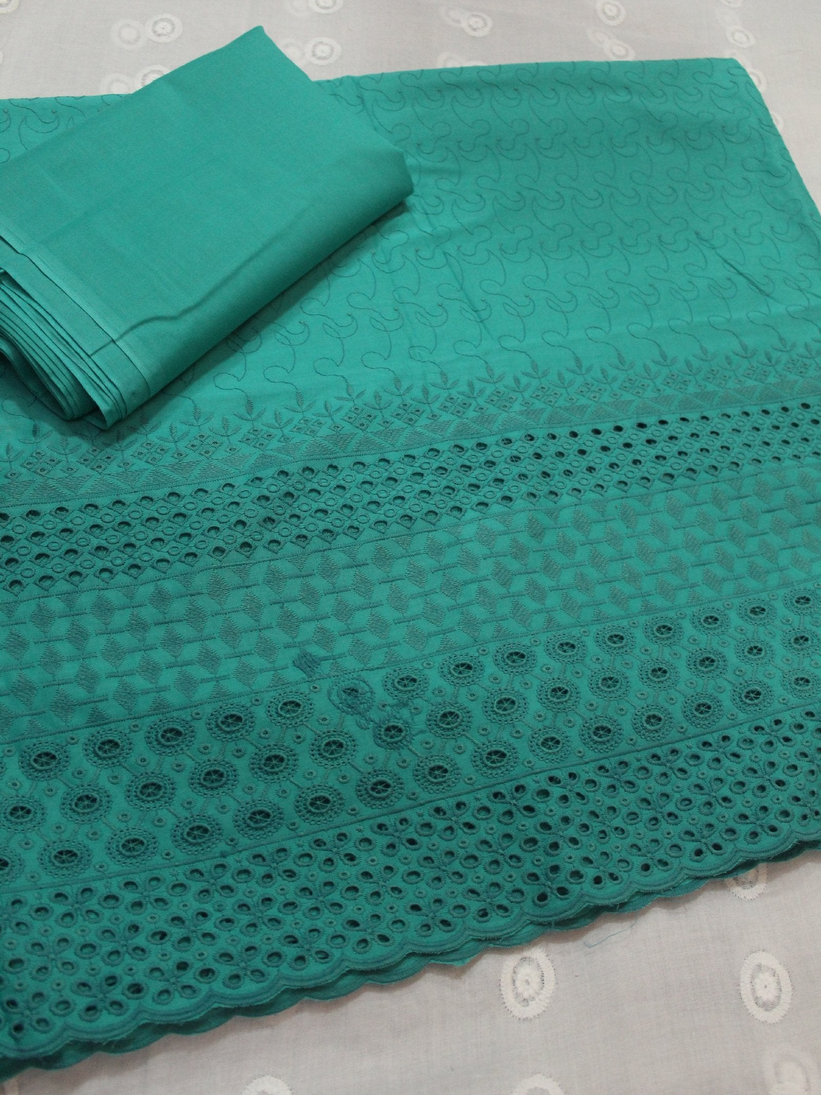 Chikankari Lawn 2 Piece Suit Daman Bore Long Length Suit | Sea Green