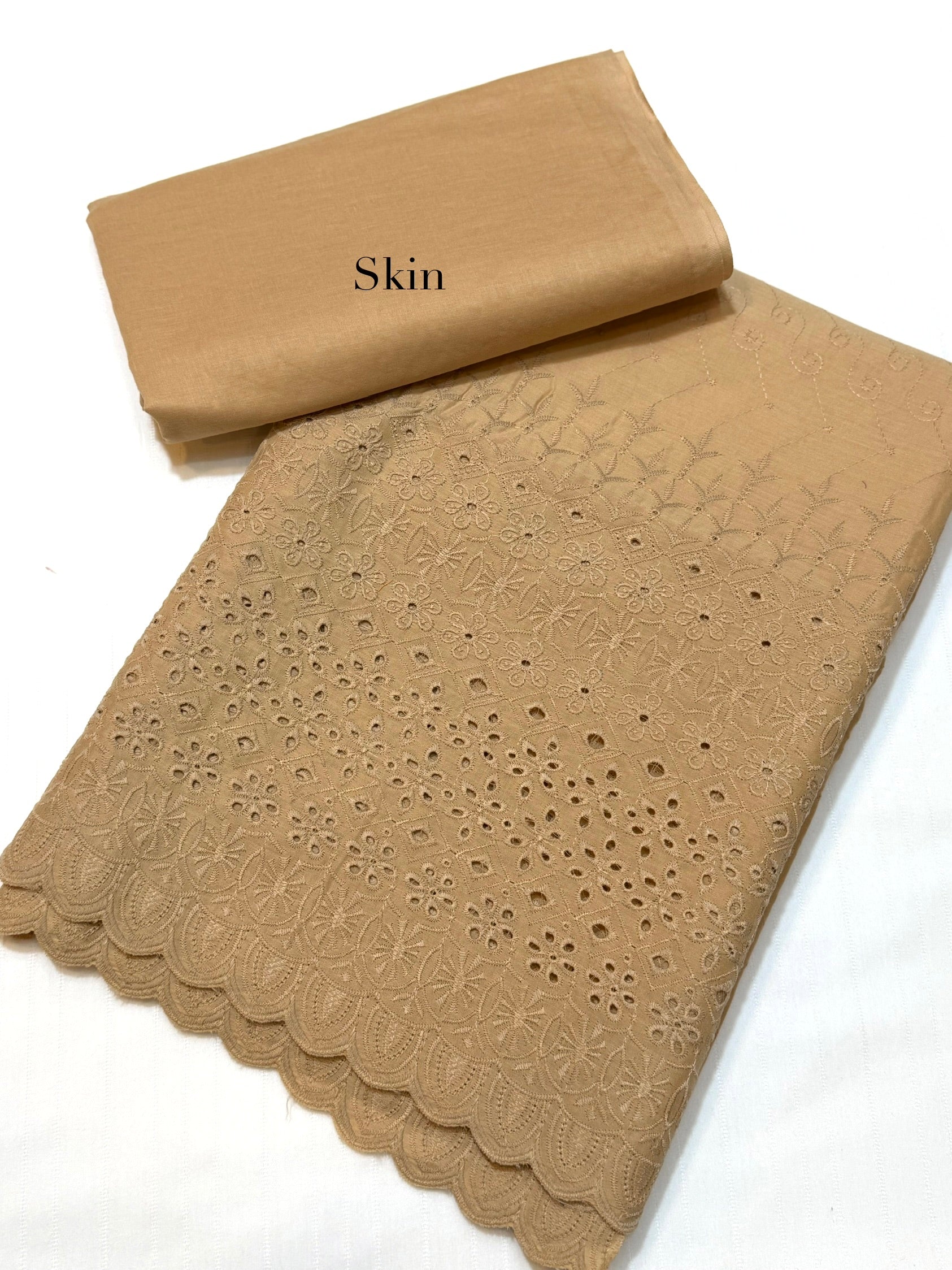 Chikankari Lawn 2 Piece Suit Daman Bore Long Length Suit | Skin