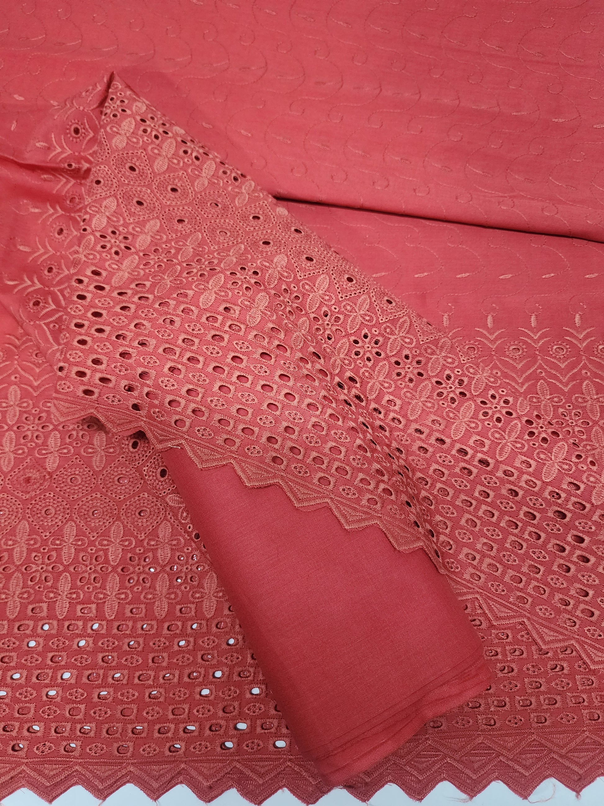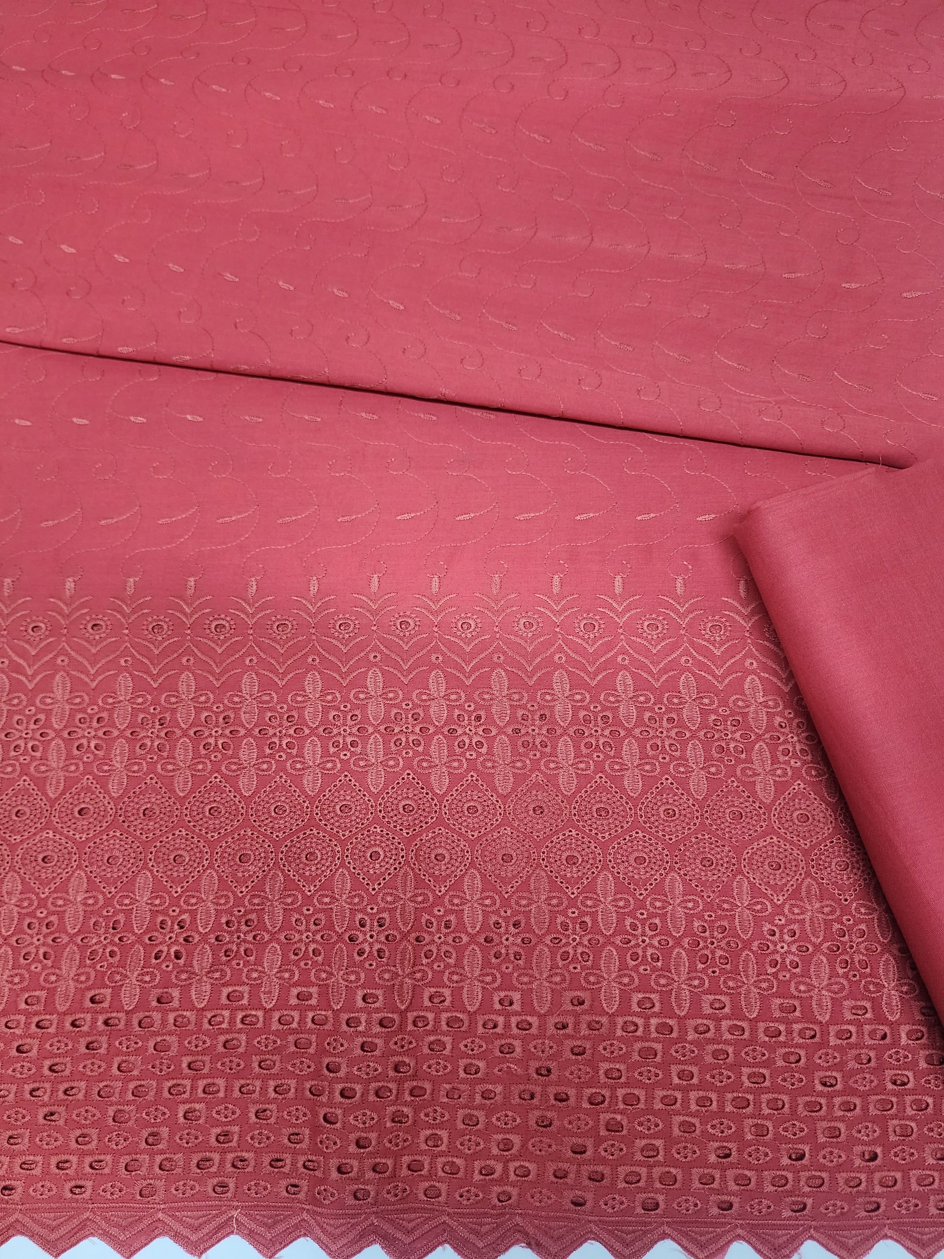 Chikankari Lawn 2 Piece Suit Daman Bore Long Length Suit | Carrot Pink