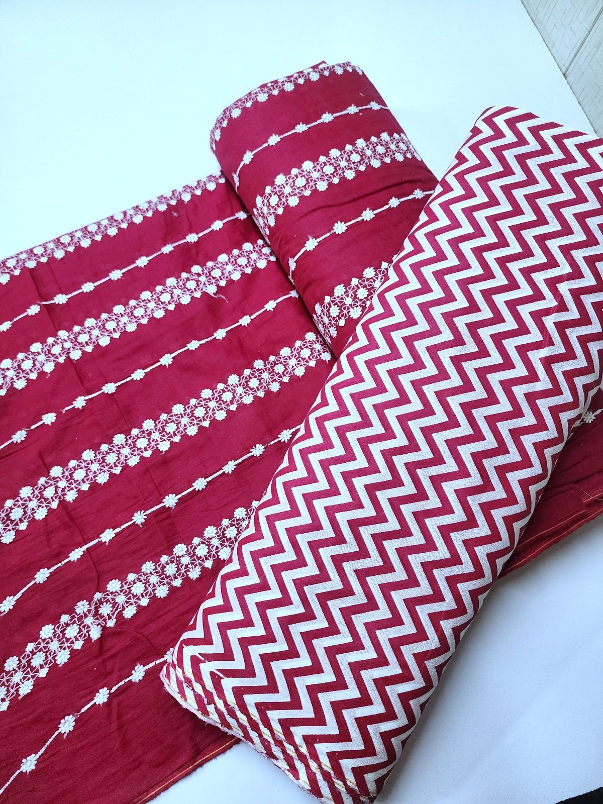 Chikankari Lawn 2 Piece Suit Lining Design | Shocking Pink