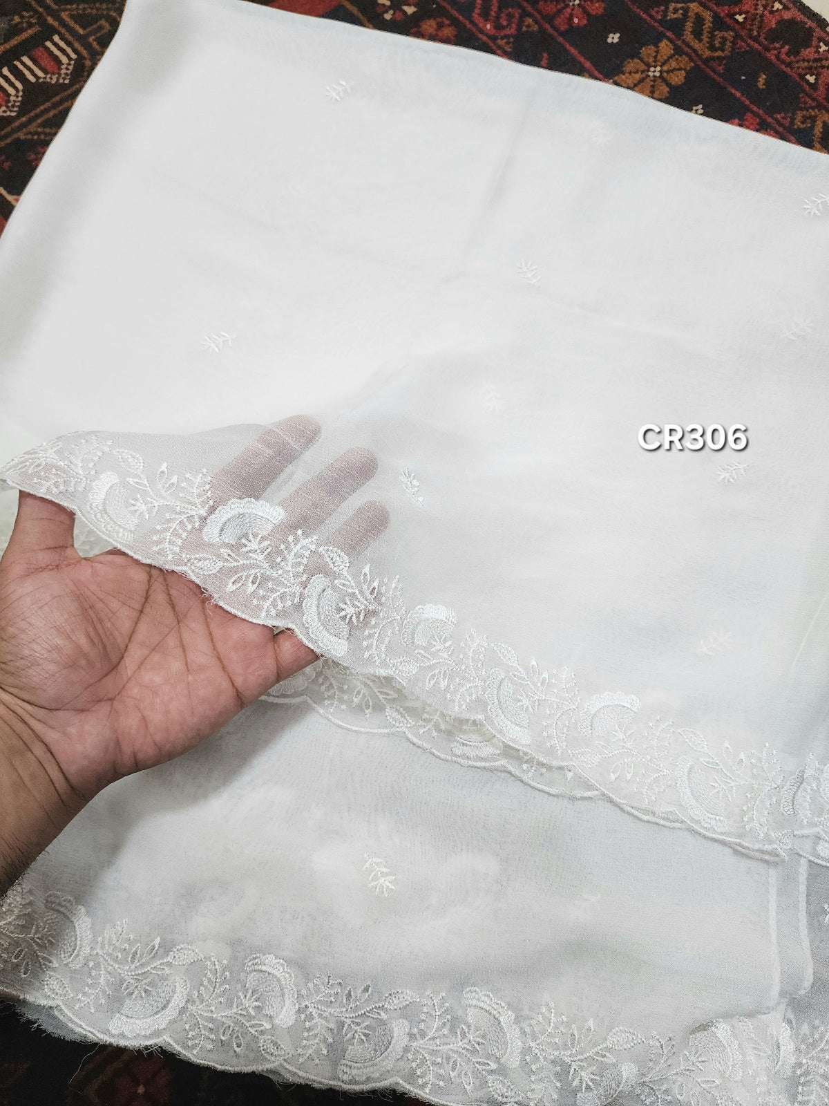 Crinkle Chiffon Cutwork Dyeable Embroidered Dupatta | CR306