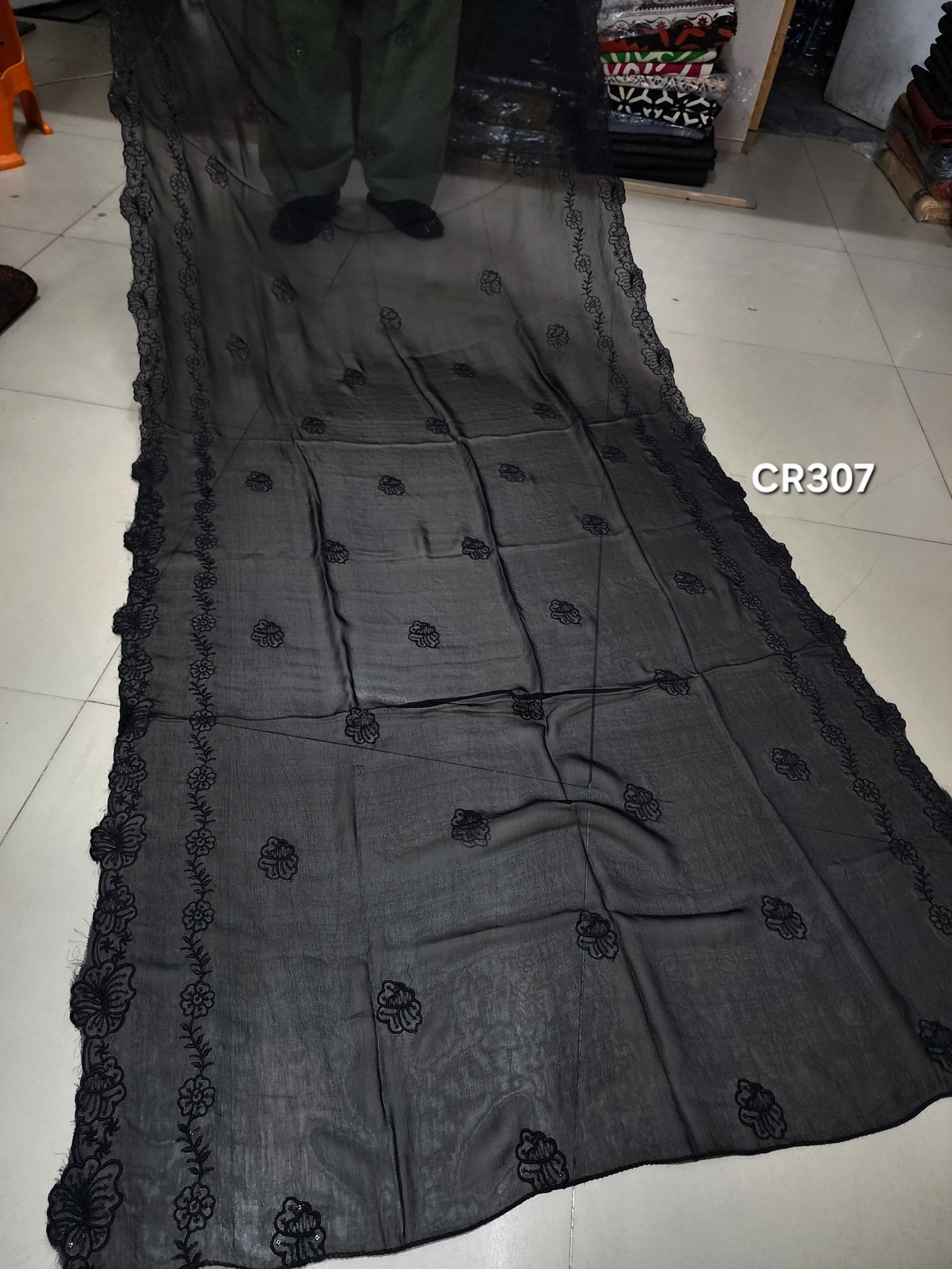 Black Crinkle Chiffon Cutwork Embroidered Dupatta | CR307
