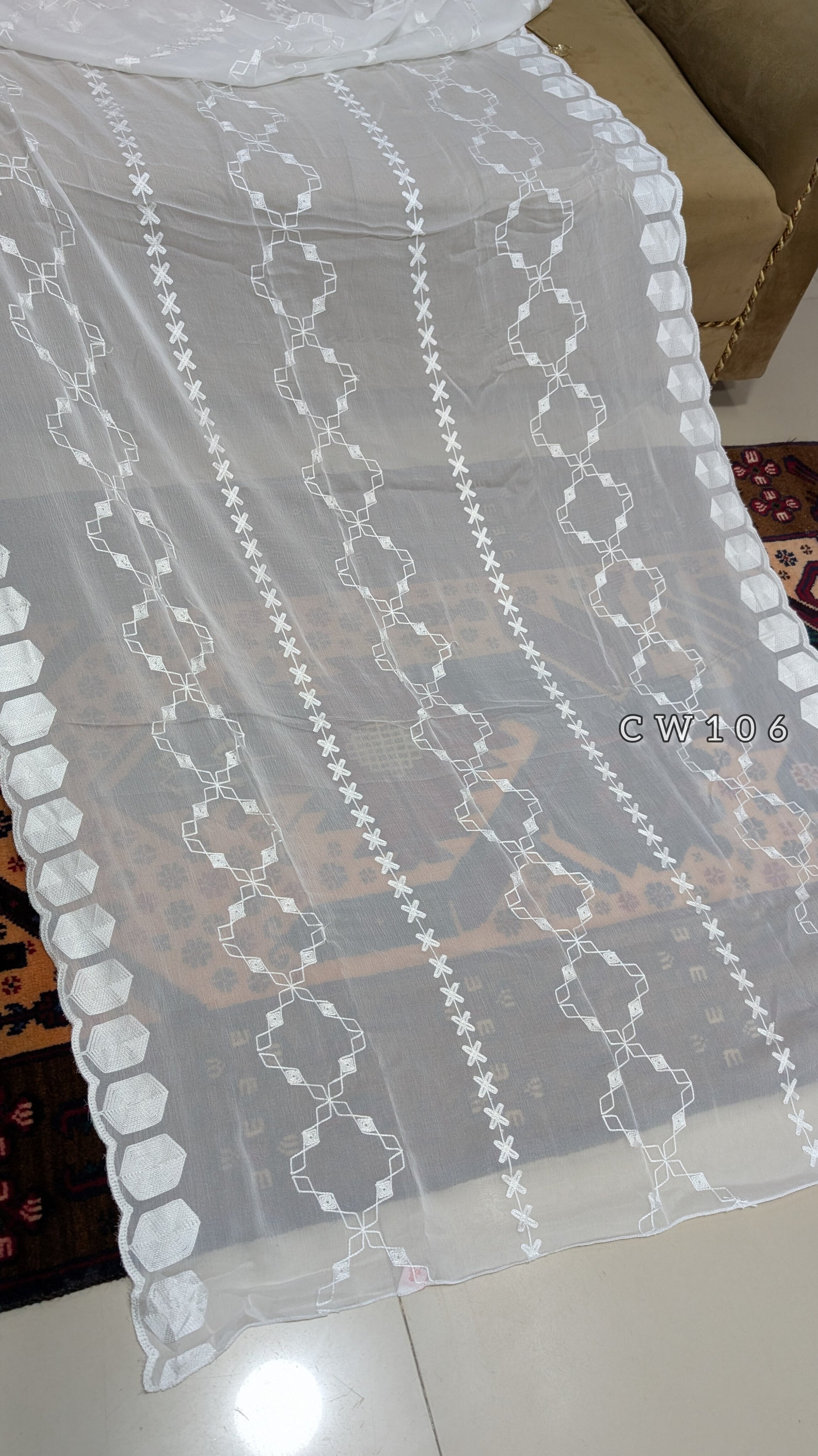Crinkle Chiffon Cutwork Dyeable Embroidered Dupatta | CW106