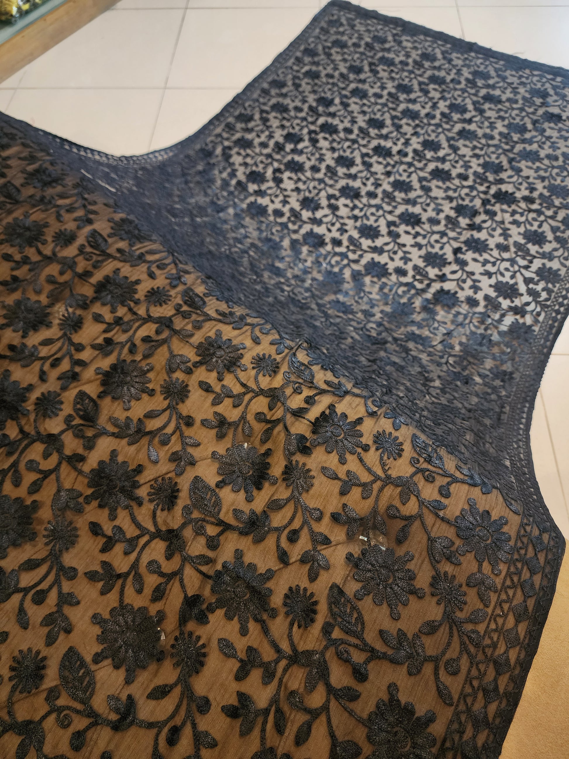 Crinkle Chiffon Embroidered Dupatta | Black Flower Jaal