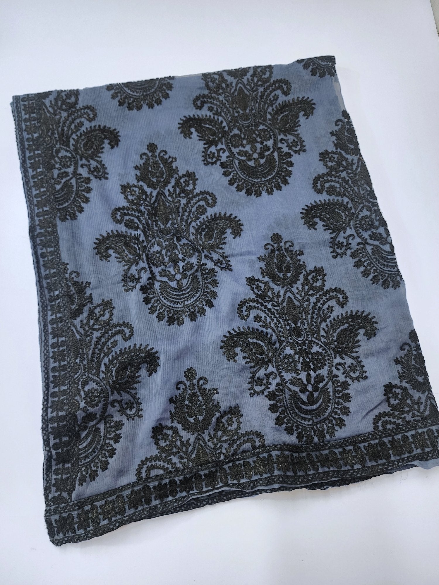 Crinkle Chiffon Embroidered Dupatta | Grey