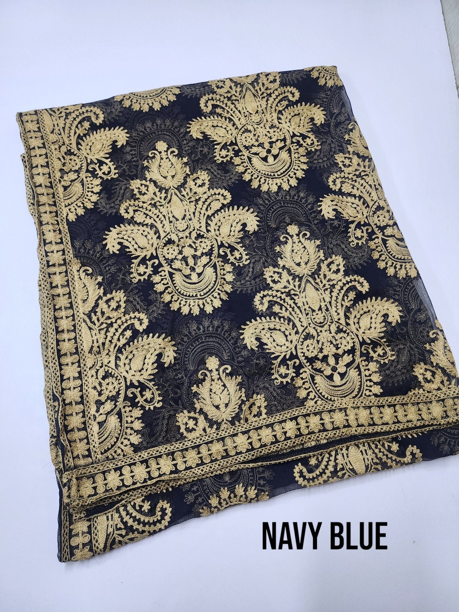 Crinkle Chiffon Embroidered Dupatta | Navy Blue