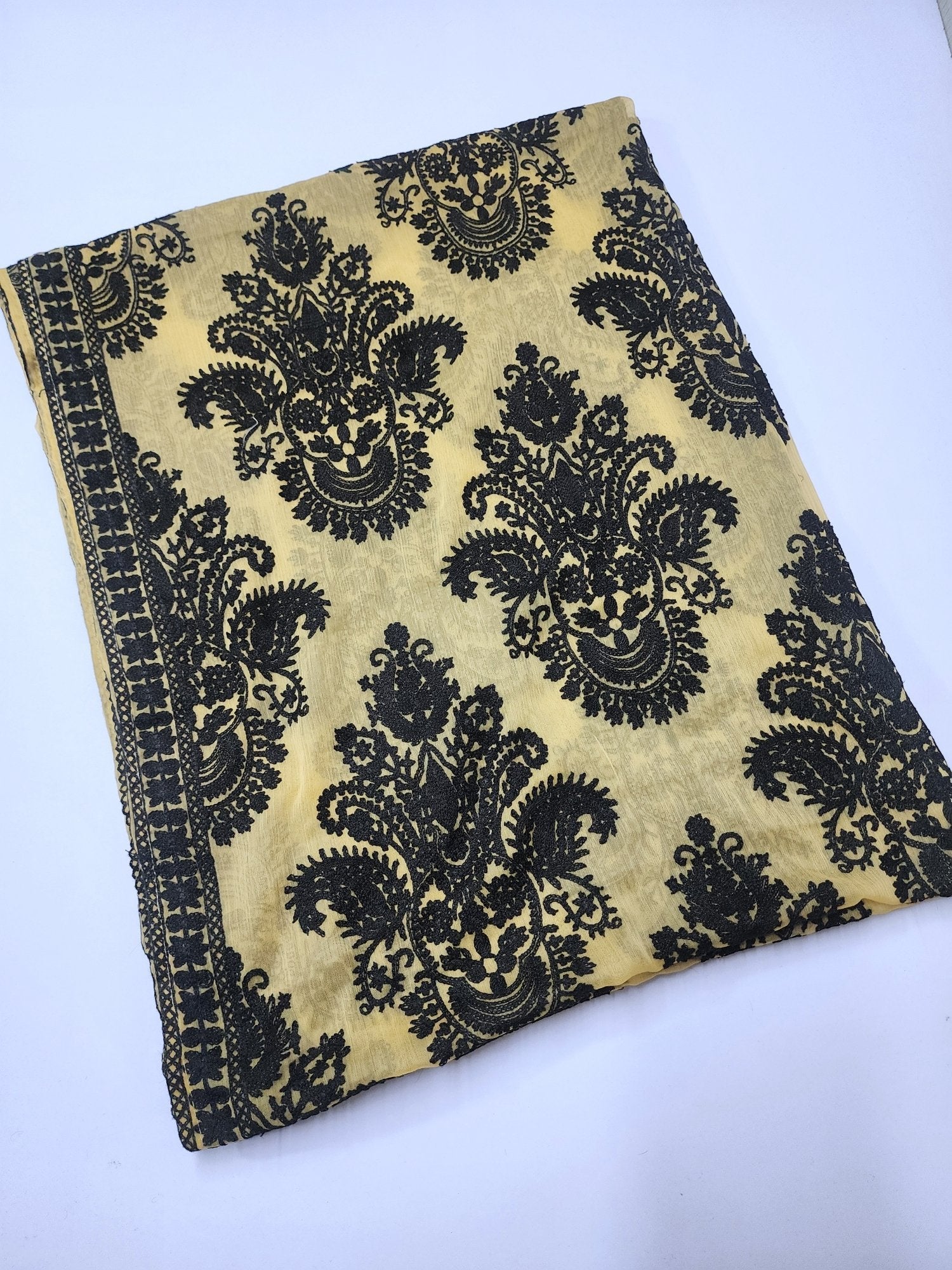 Crinkle Chiffon Embroidered Dupatta | Skin with Black