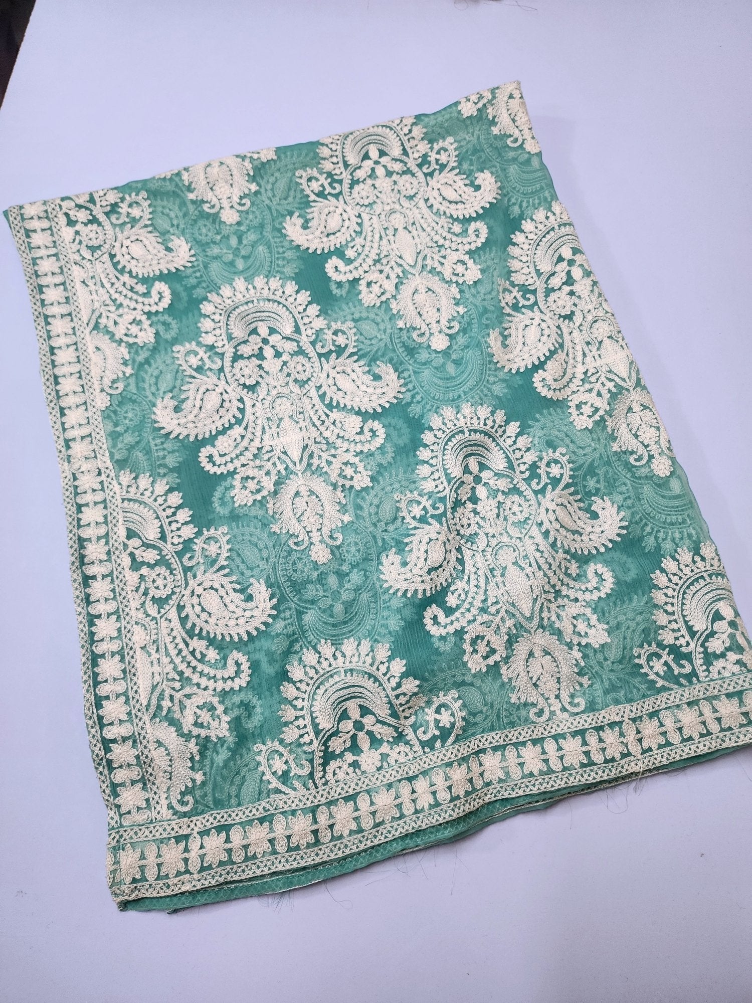 Crinkle Chiffon Embroidered Dupatta | Turquoise
