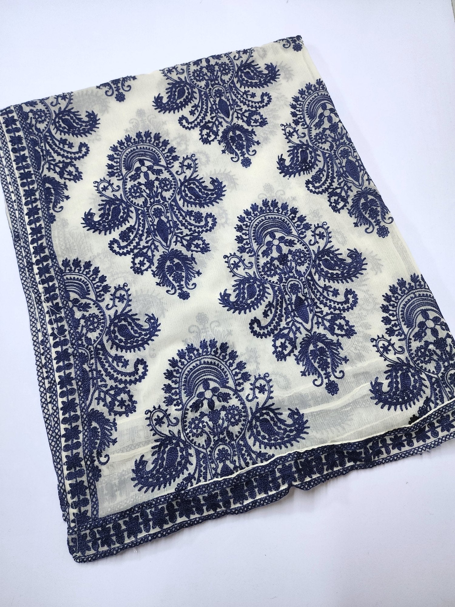 Crinkle Chiffon Embroidered Dupatta | White with Blue