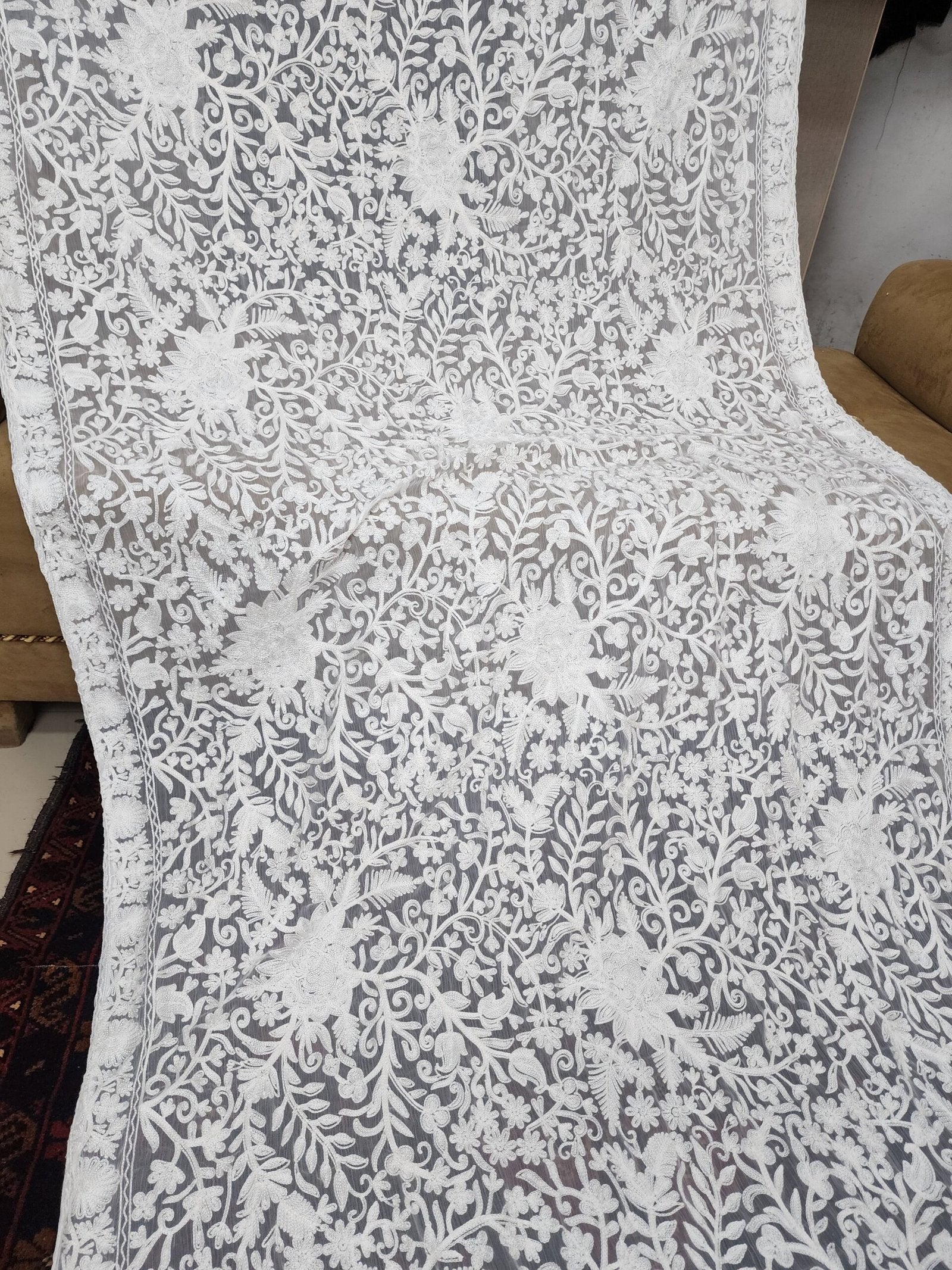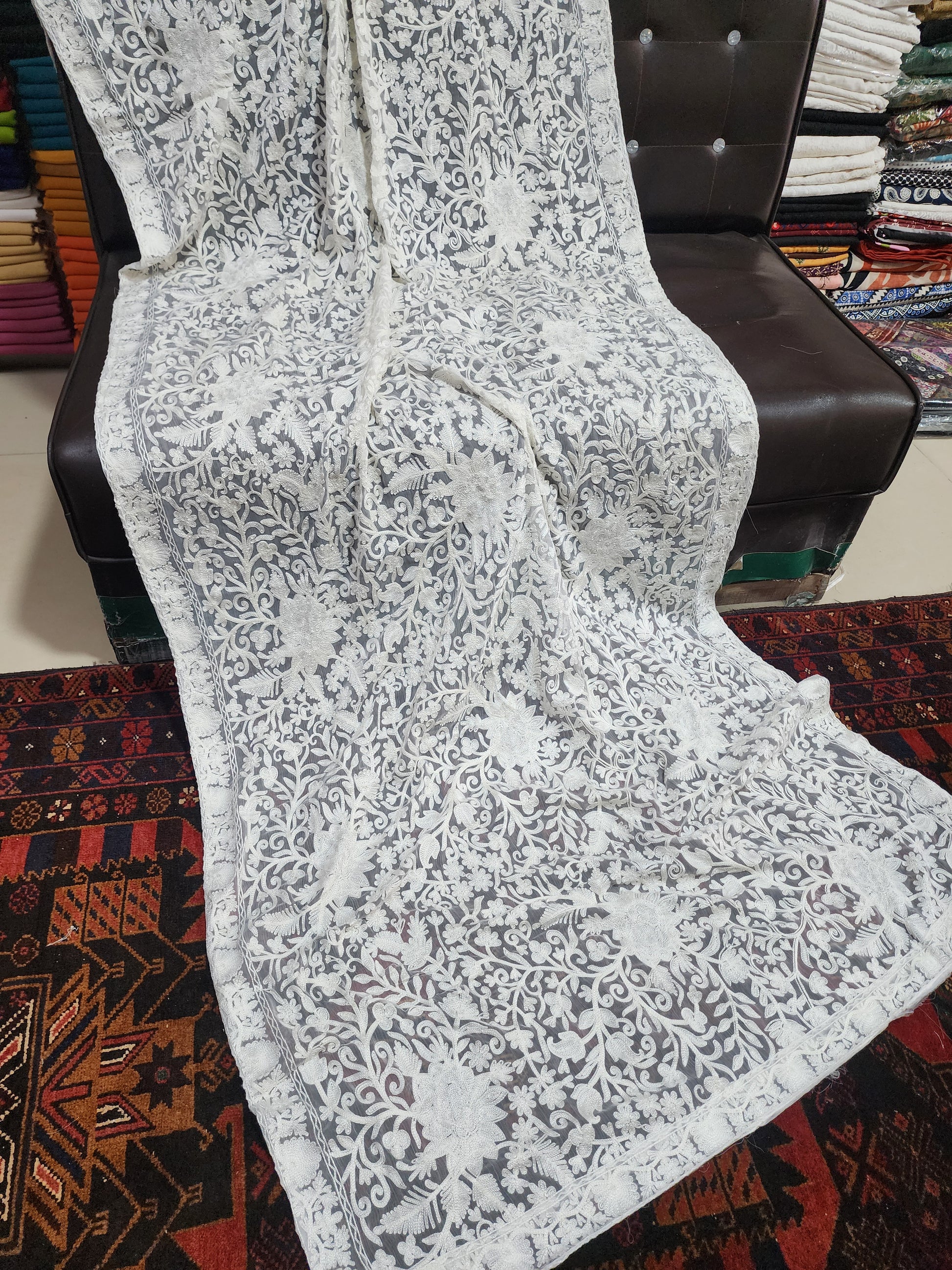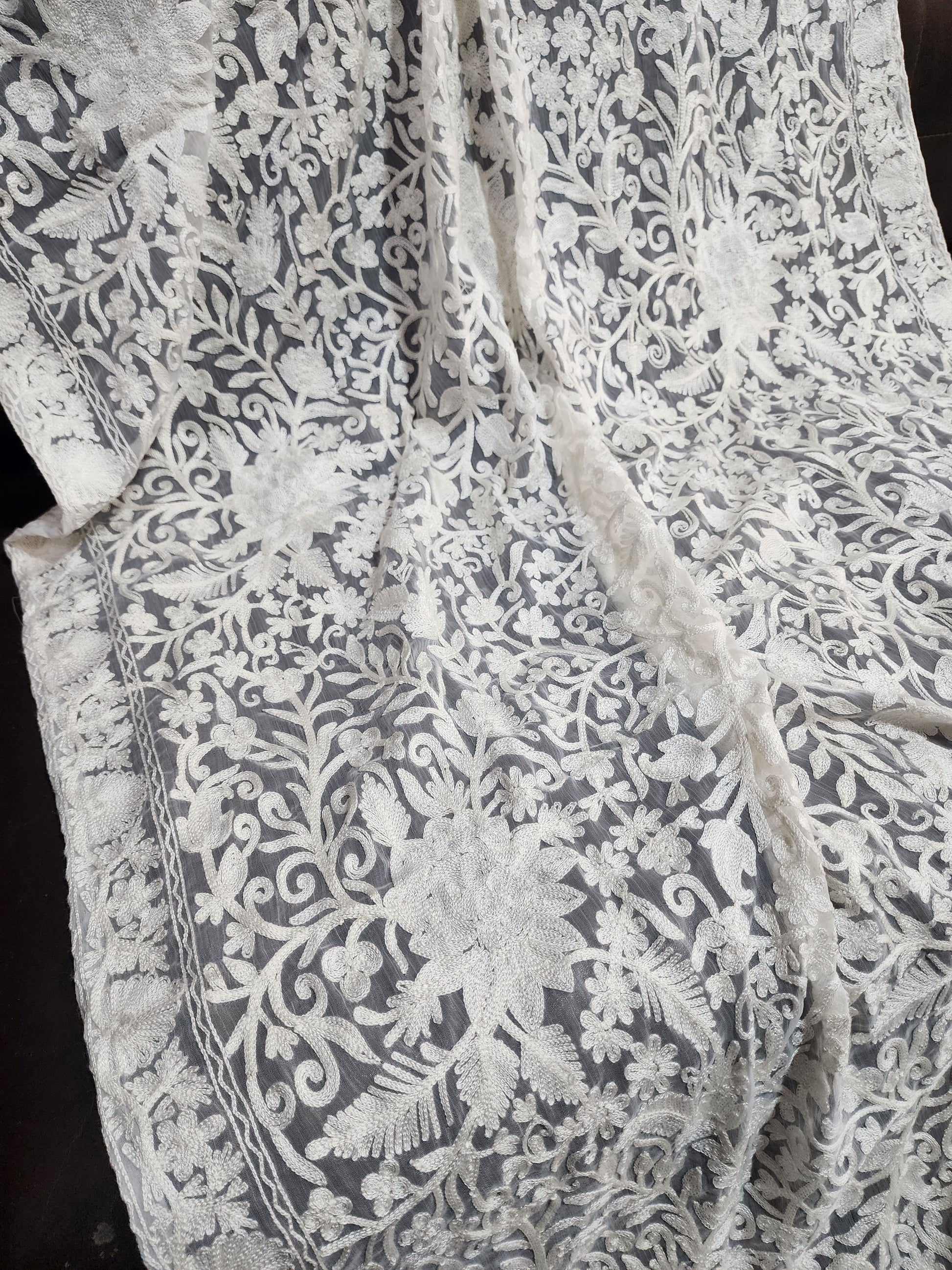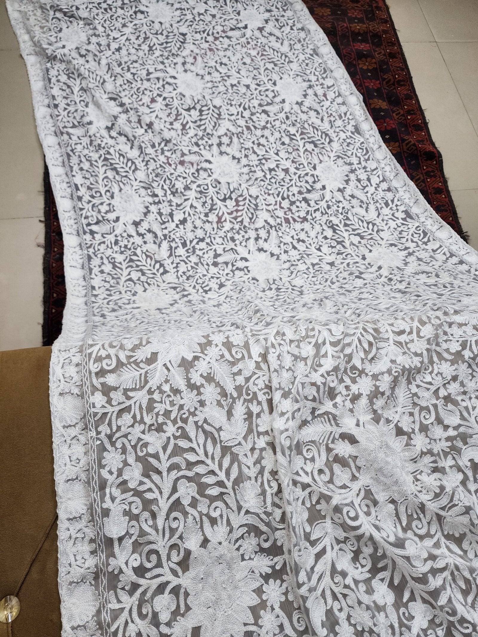 Crinkle Chiffon Gulabkar Embroidered Aar Work Dupatta | White