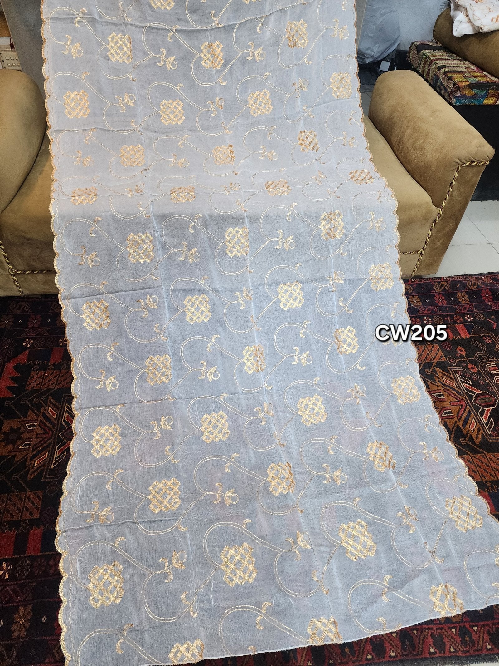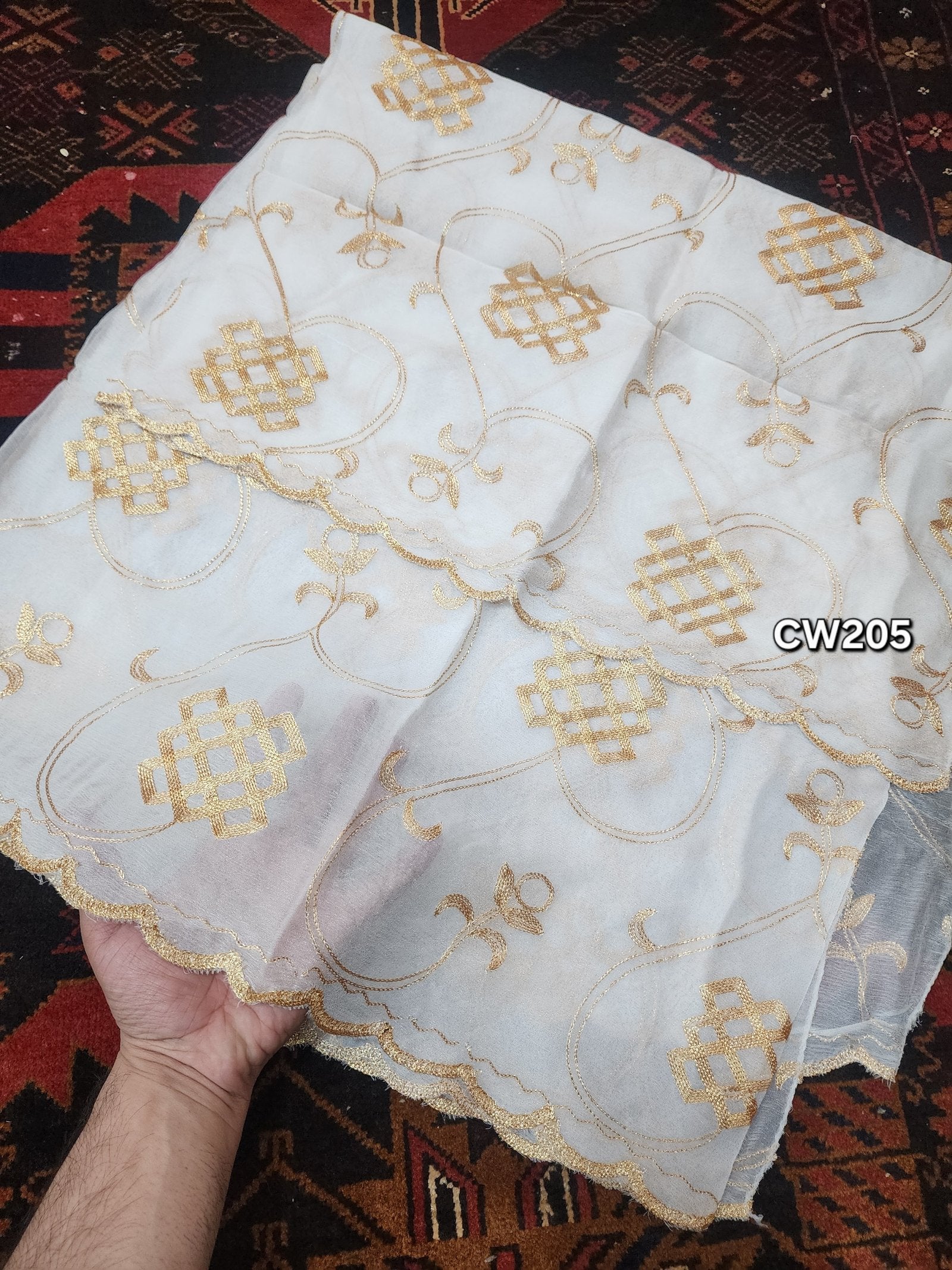 - Full Embroidered Dupatta Cutwork Border Scallop Work