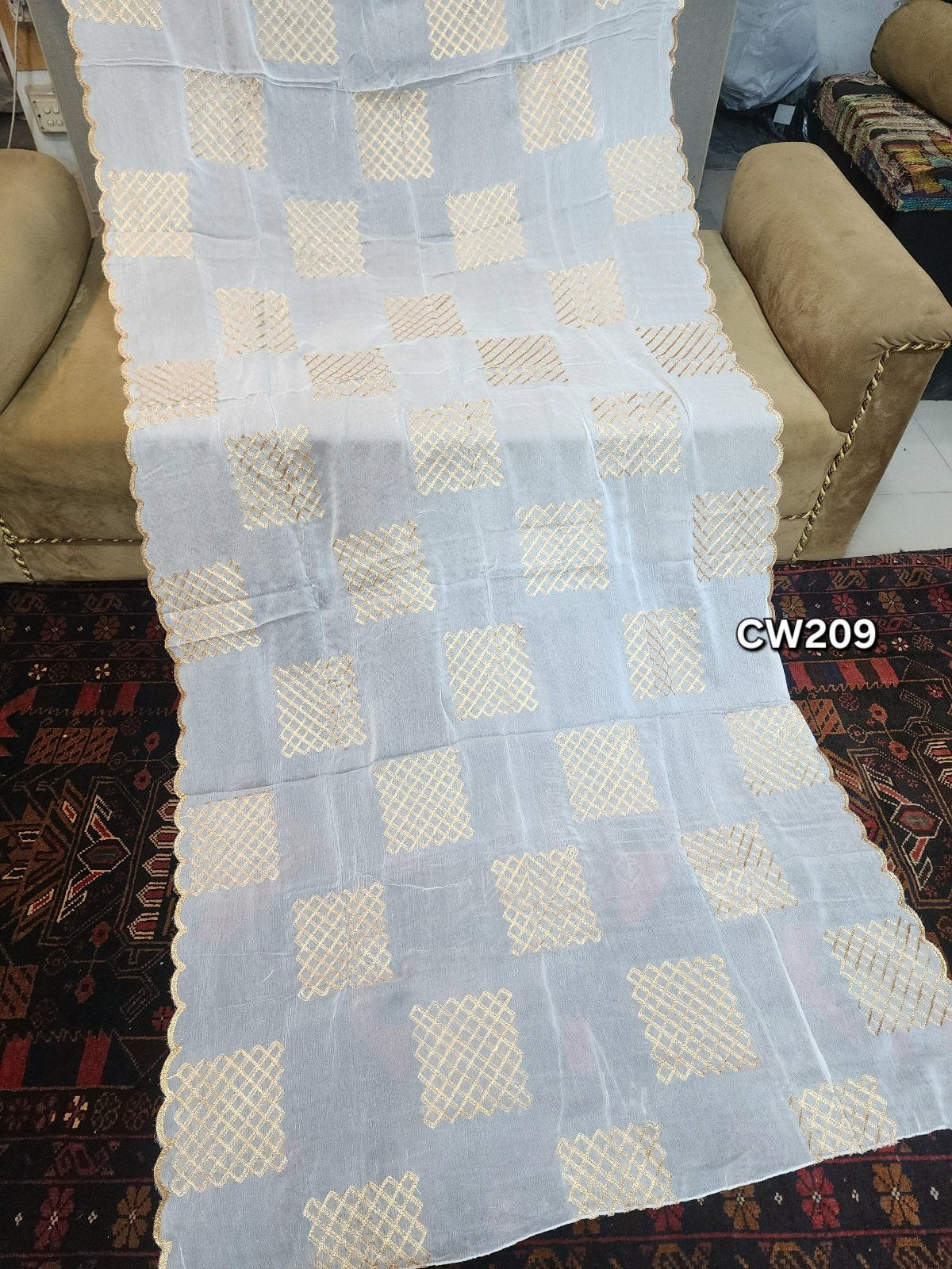 Fancy Cutwork Border Crinkle Chiffon Embroidered Dupatta | Dyeable