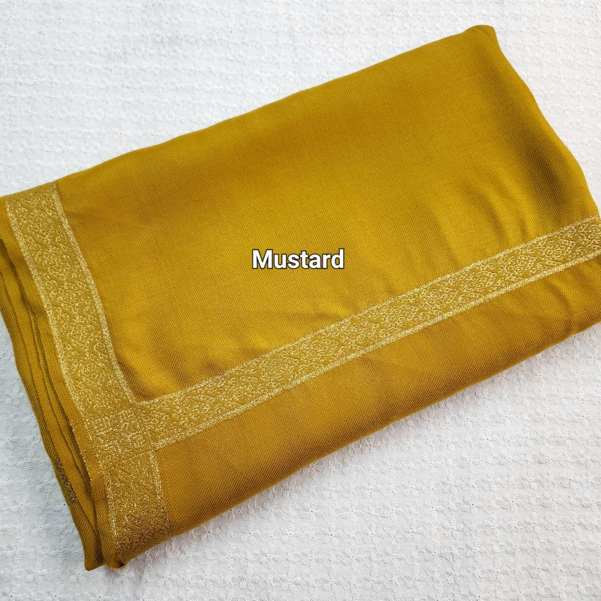 Fine Pashmina Self Border Shawl | Mustard