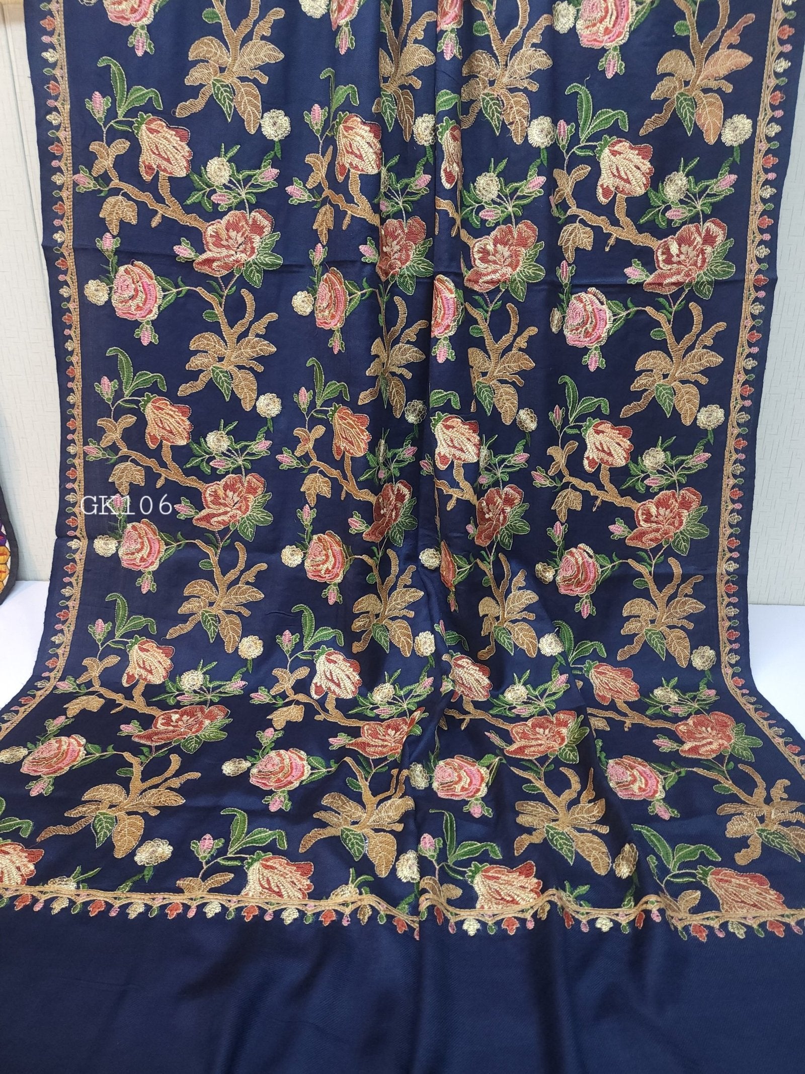 - Fine Pashmina Base and Kashmiri Machine Embroidery.