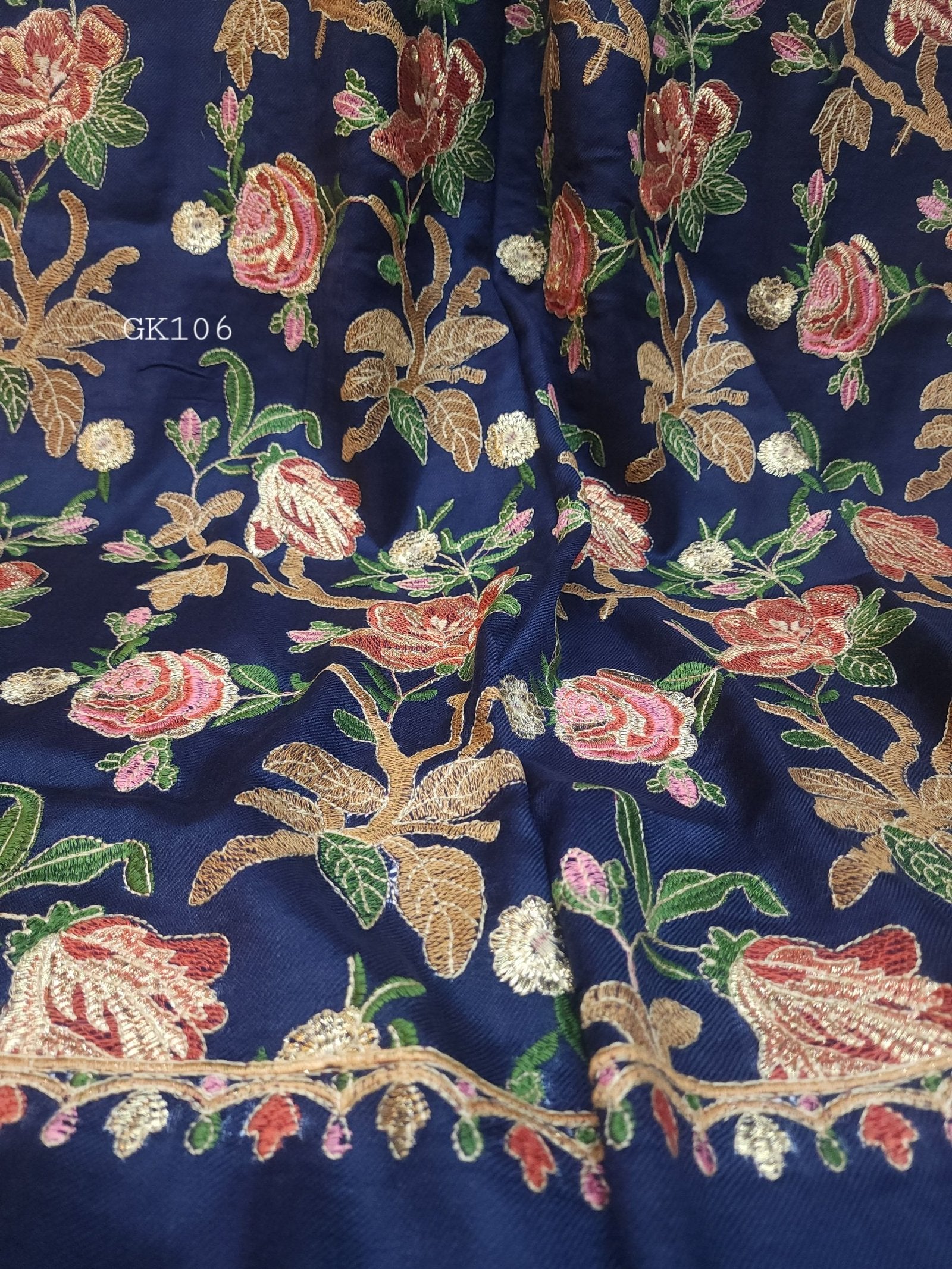 Gulabkar Pashmina Embroidered Shawl Fancy Tilla and Thread Work Perfect Gift | Navy Blue