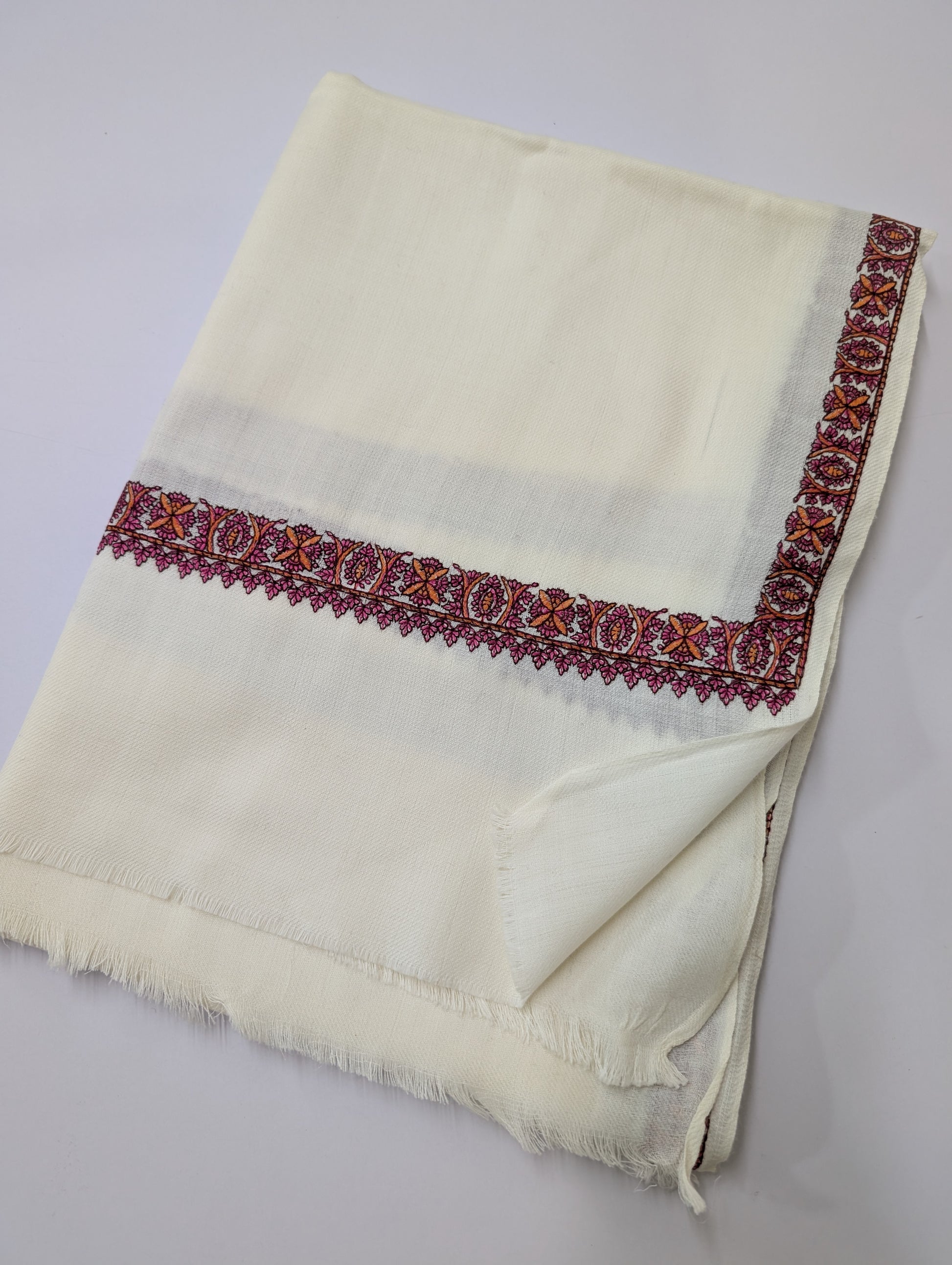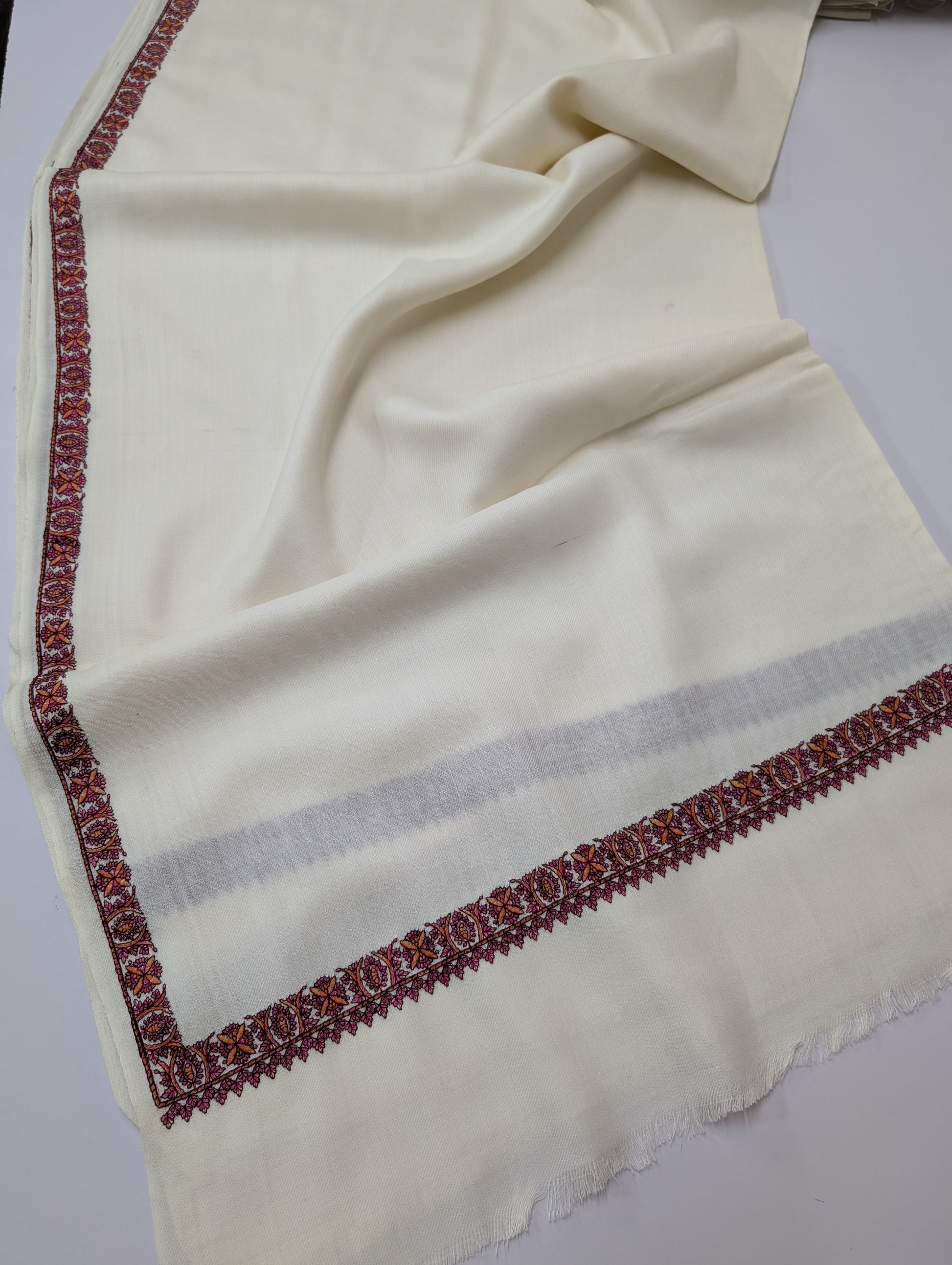 Hashia Border Embroidered Pashmina Shawl Best Selling Shawl Perfect Gift | Off White