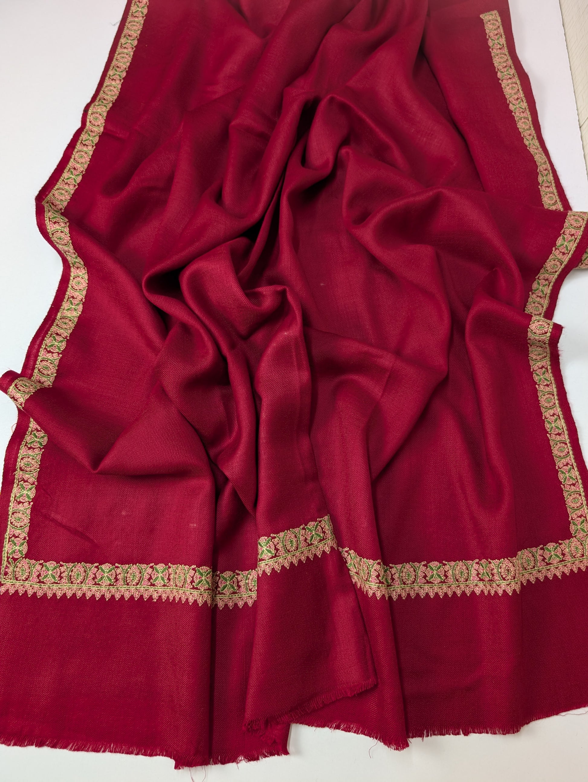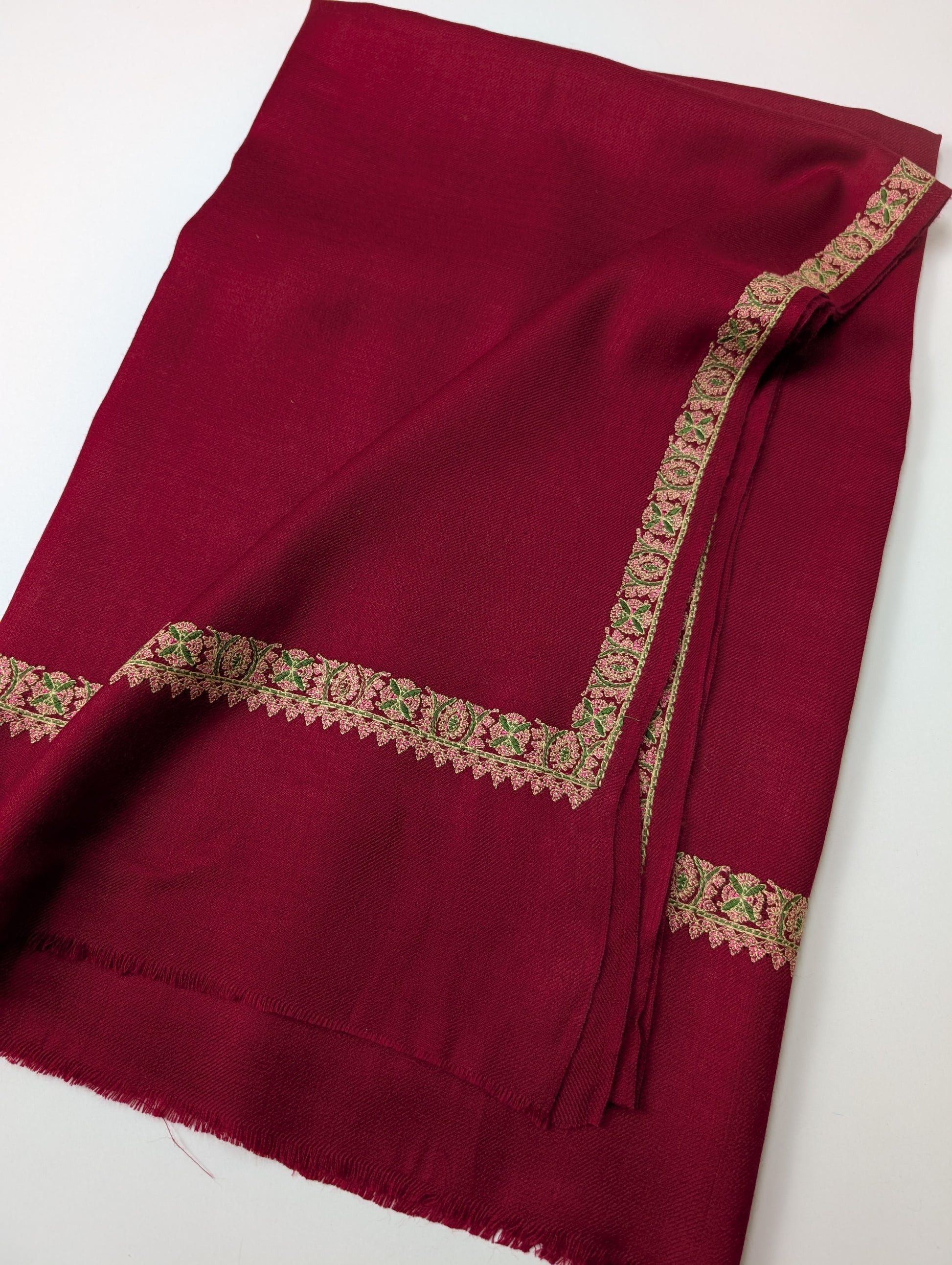 Hashia Border Embroidered Pashmina Shawl Best Selling Shawl Perfect Gift | Maroon