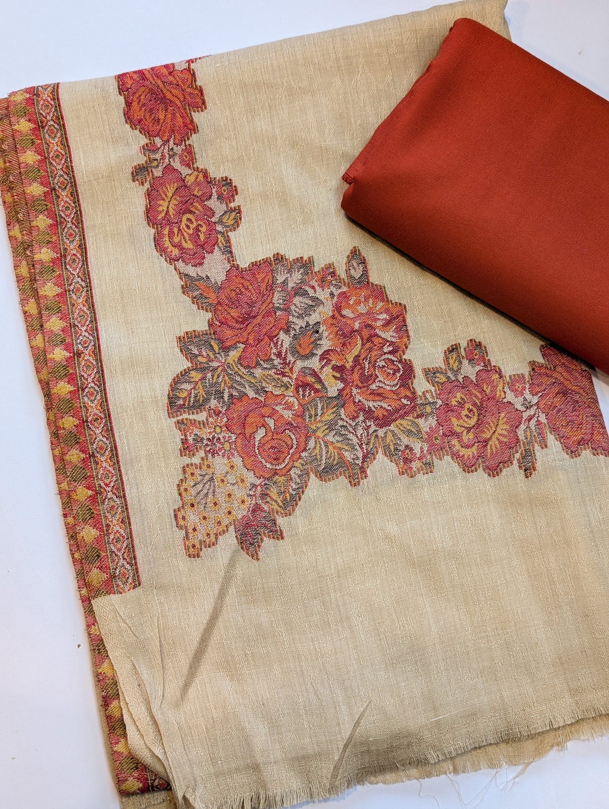 Kani Border Shawl With Plain Marina Suit | Skin with Rust