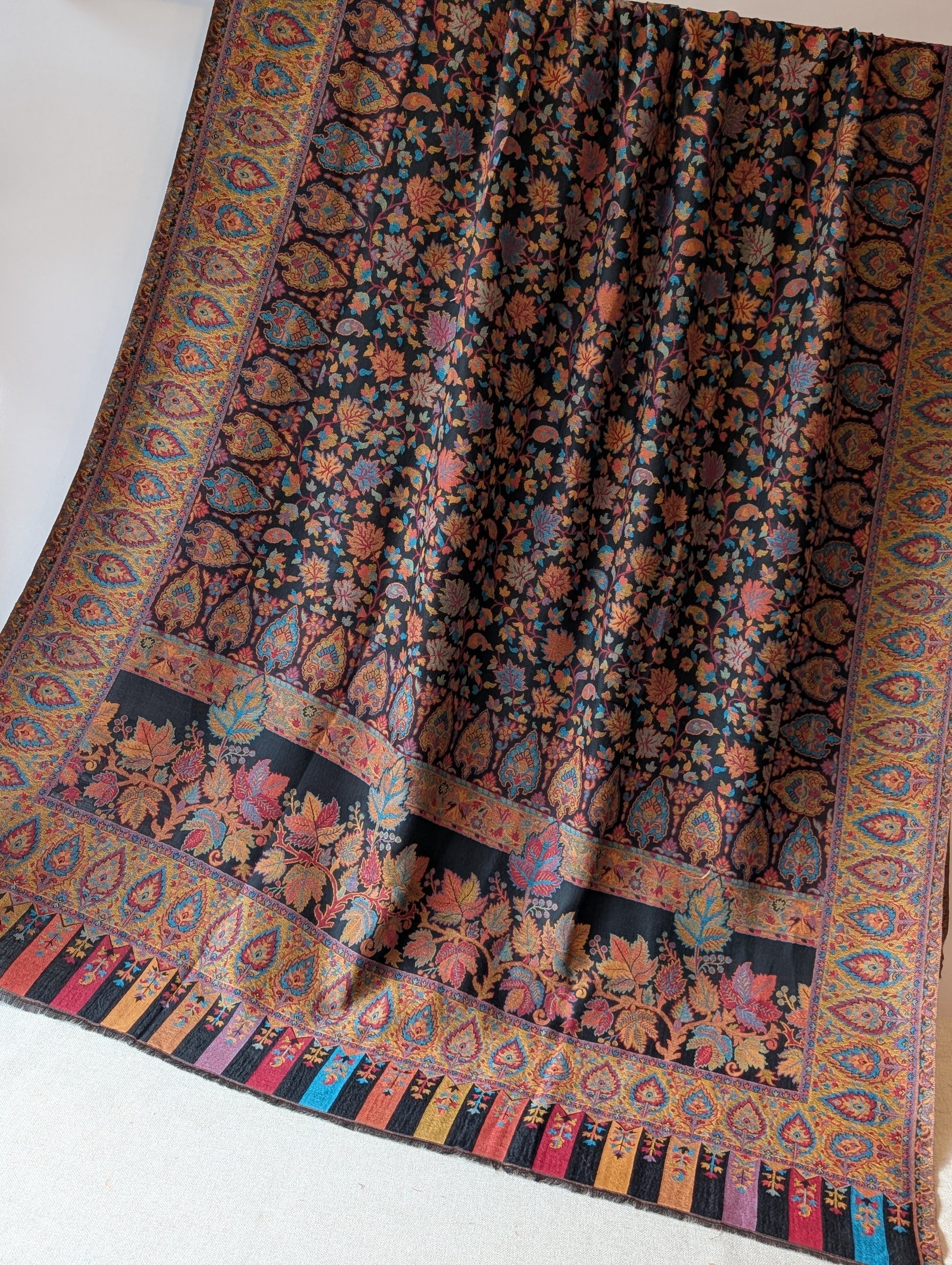 Kani Toosh Shawl Weaved Jamawar Shawl Made in Kashmir Full Size Shawl Perfect Gift | Black