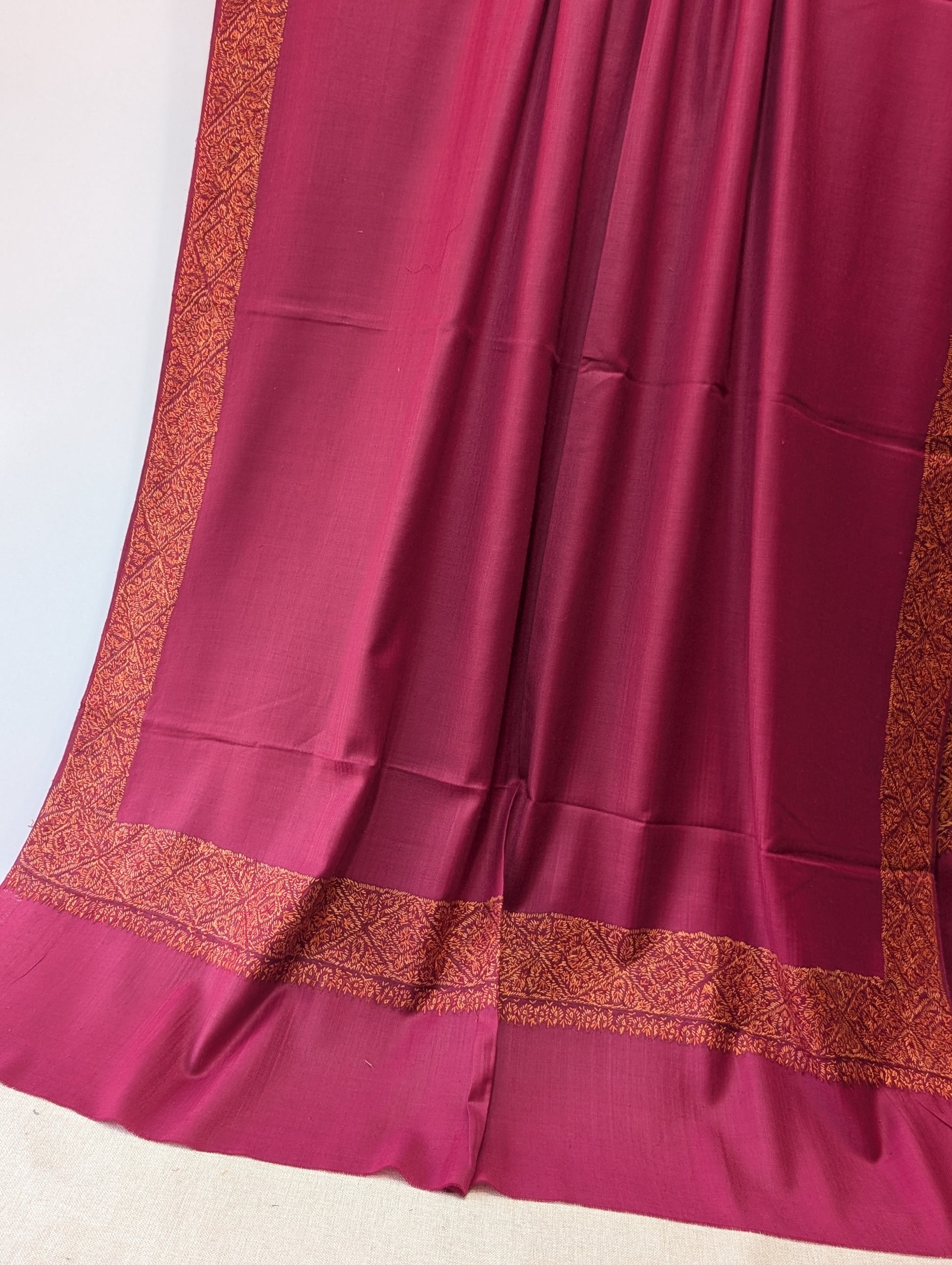Kashmiri Shawl | Handmade Border Embroidery Made in Kashmir Pure Pashmina | Magenta