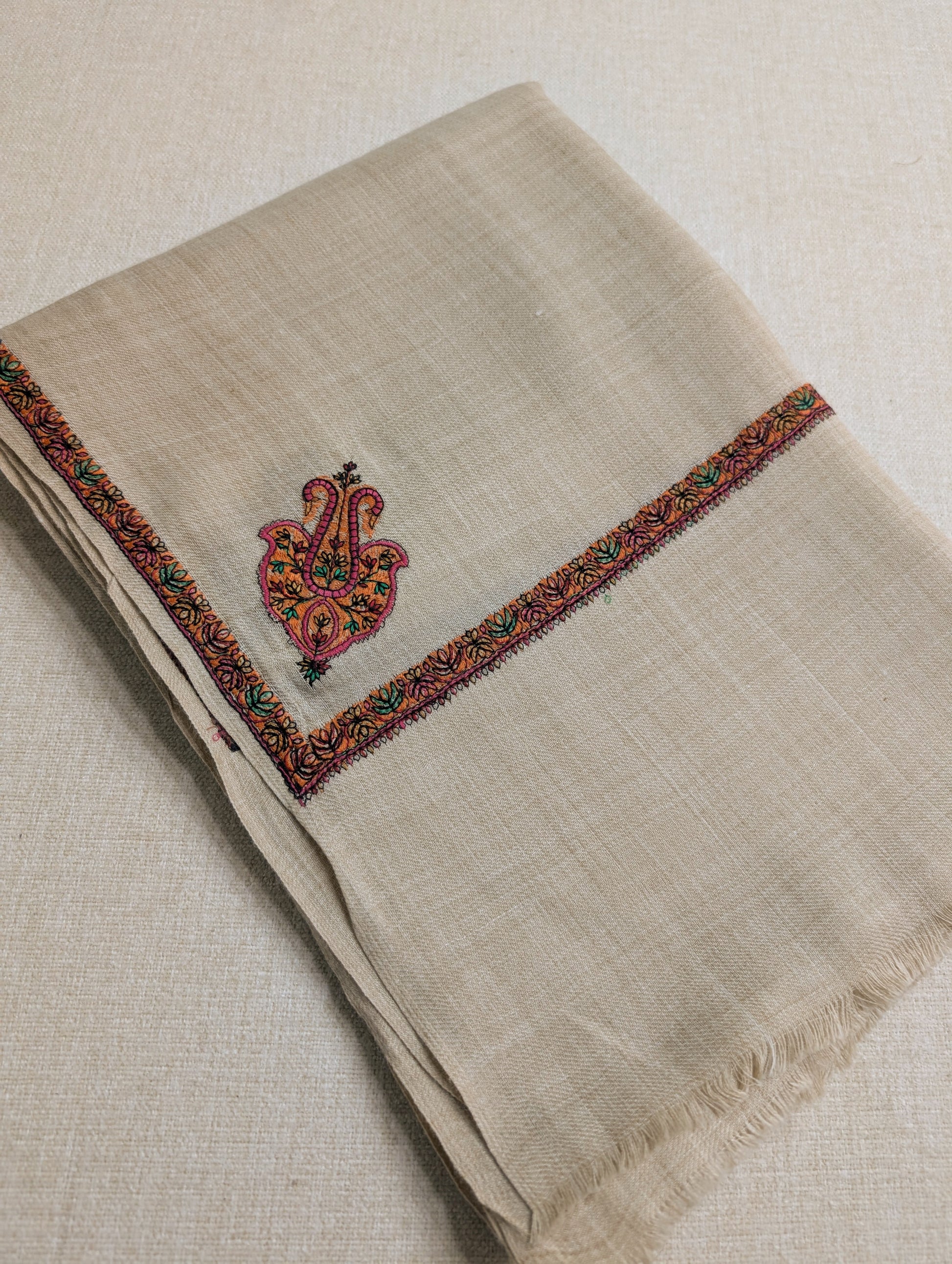 Kingri Border Embroidered Pure Pashmina Shawl Best Selling Shawl Perfect Gift | Light Skin