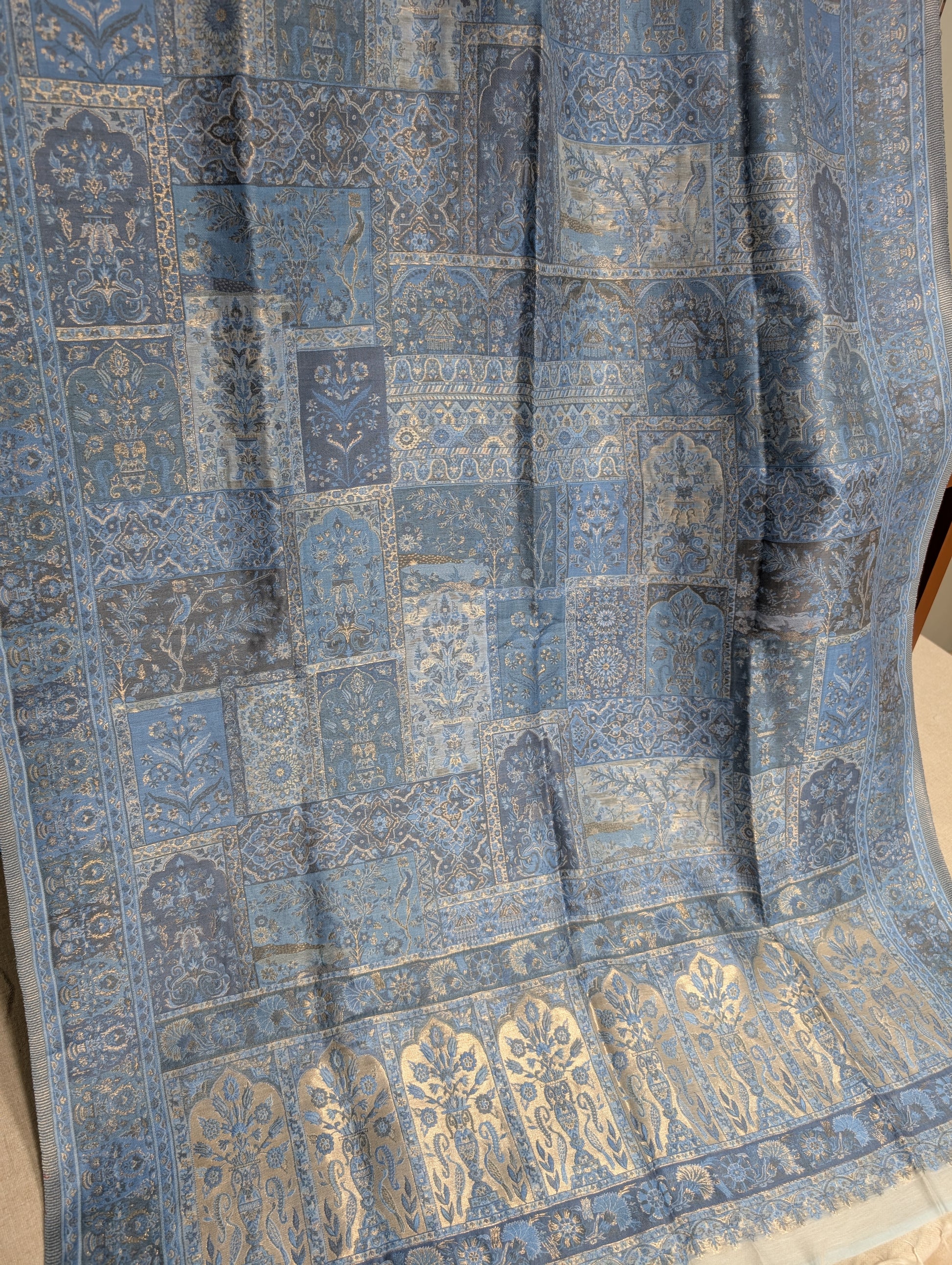 The material is silk kani which makes the shawl very soft and light in weight.
