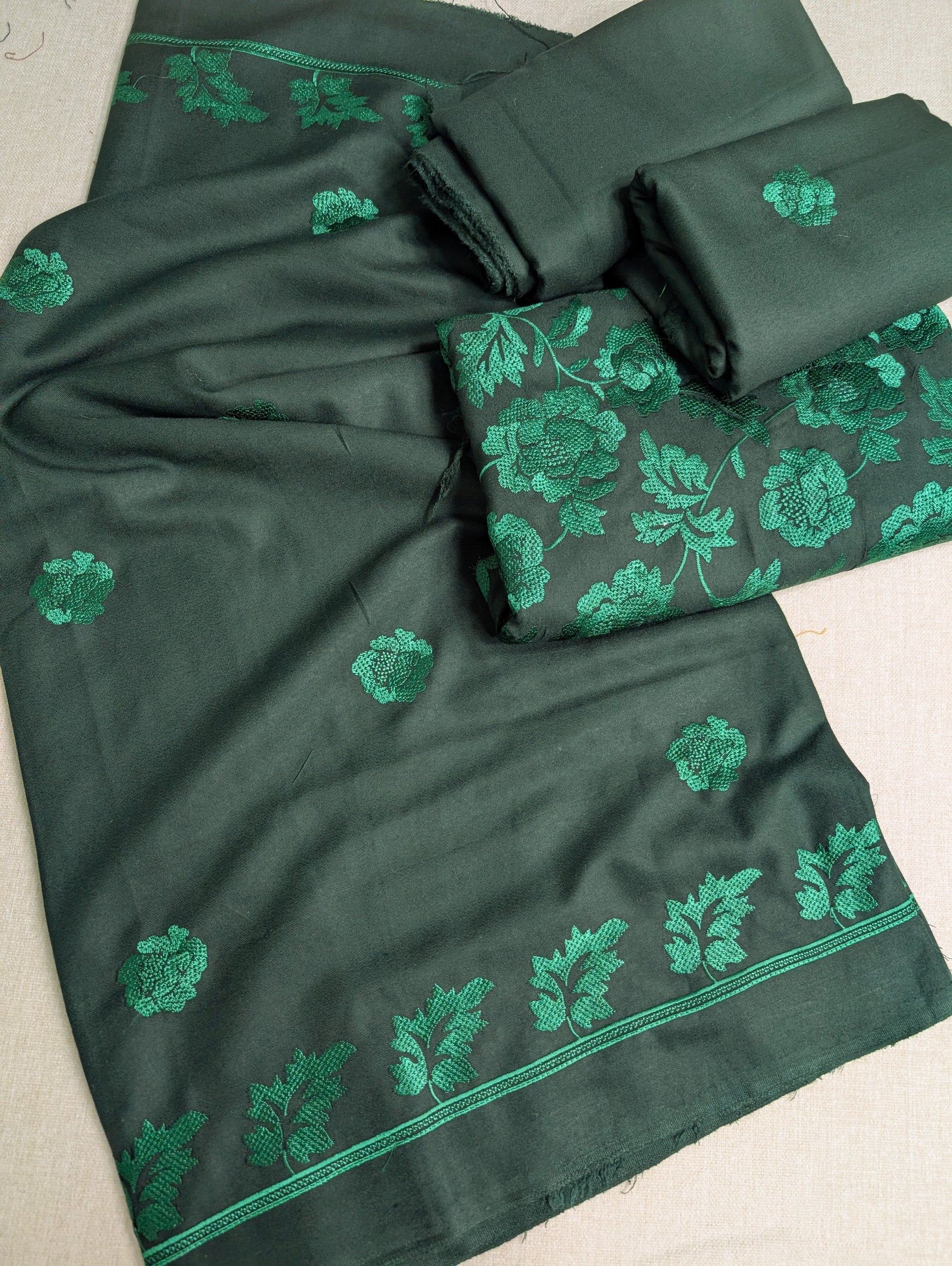Marina 3 Piece Embroidered Suit Same on Same Embroidery Marina Shawls | Green