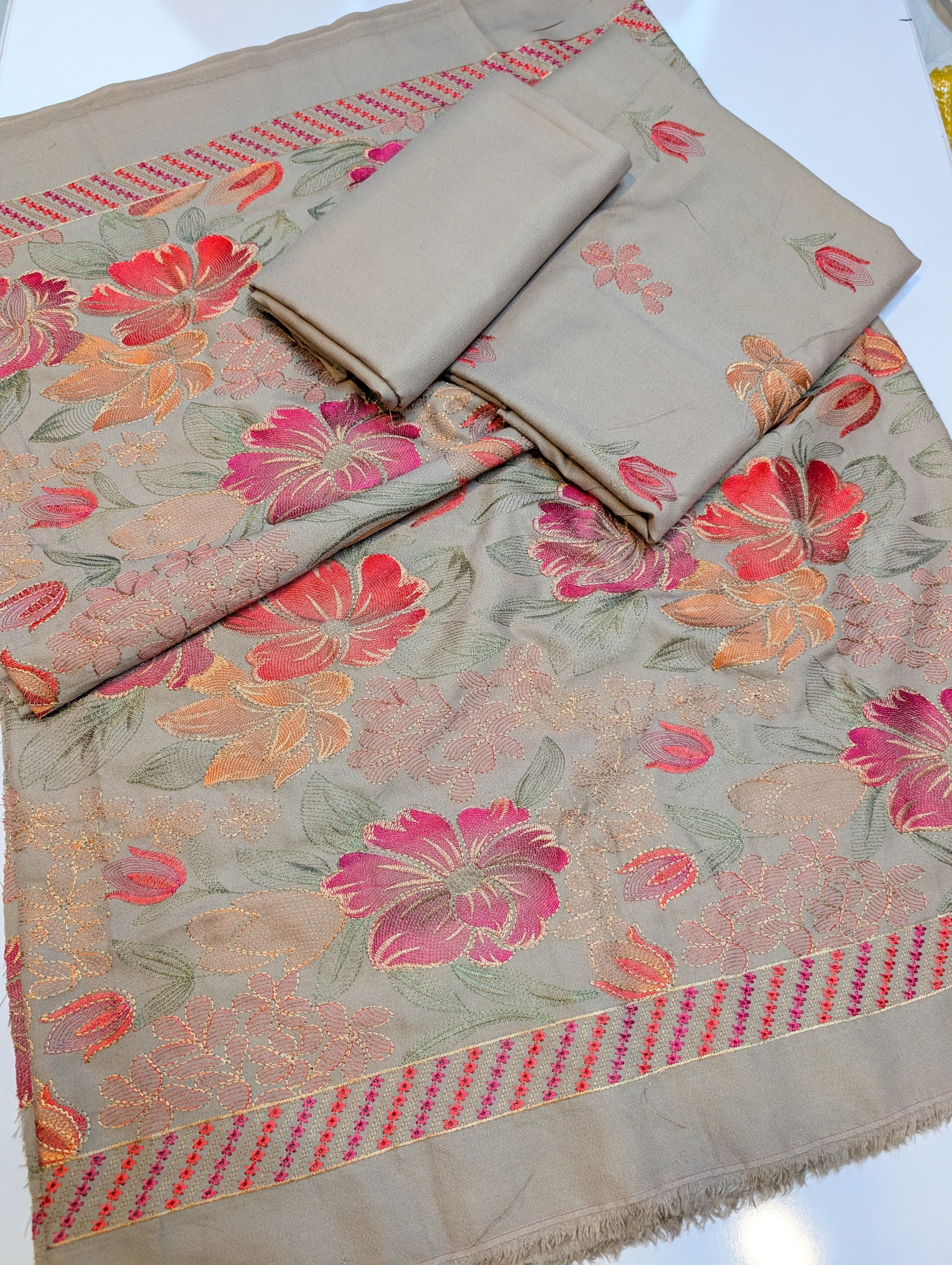 Marina Embroidered 3 Piece Suit Multi Embroidery Heavy Shawl | Skin Grey