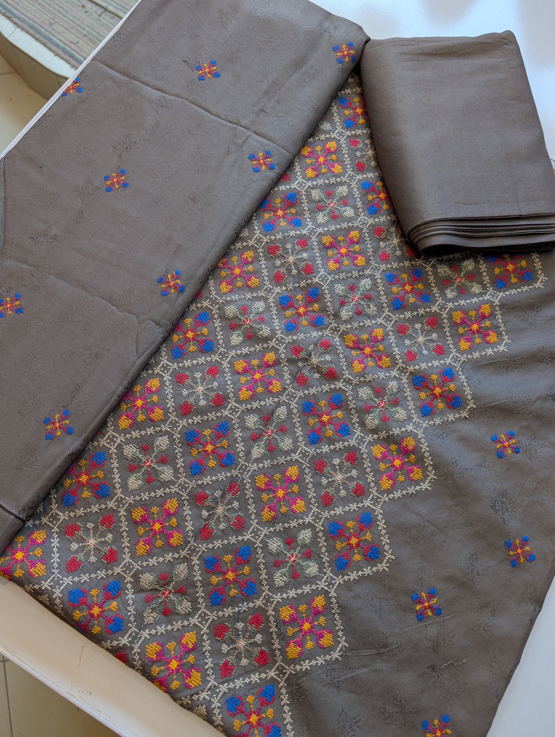 Marina Embroidered 3 Piece Suit Multi Embroidery | Skin Grey