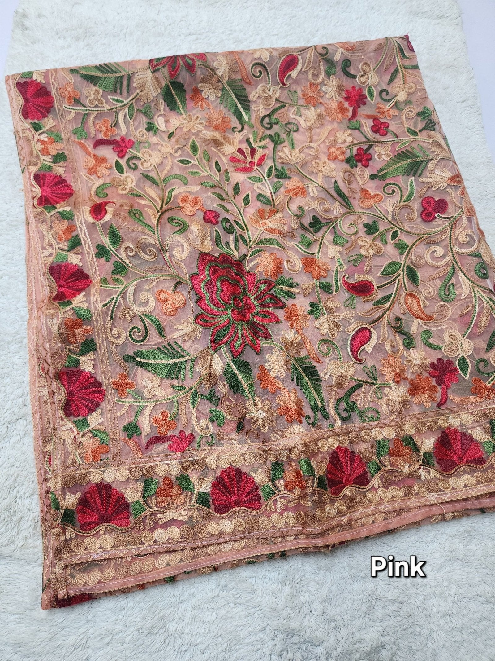 Organza Gulabkar Embroidered Dupatta Soft and Beautiful Dupatta | Pink