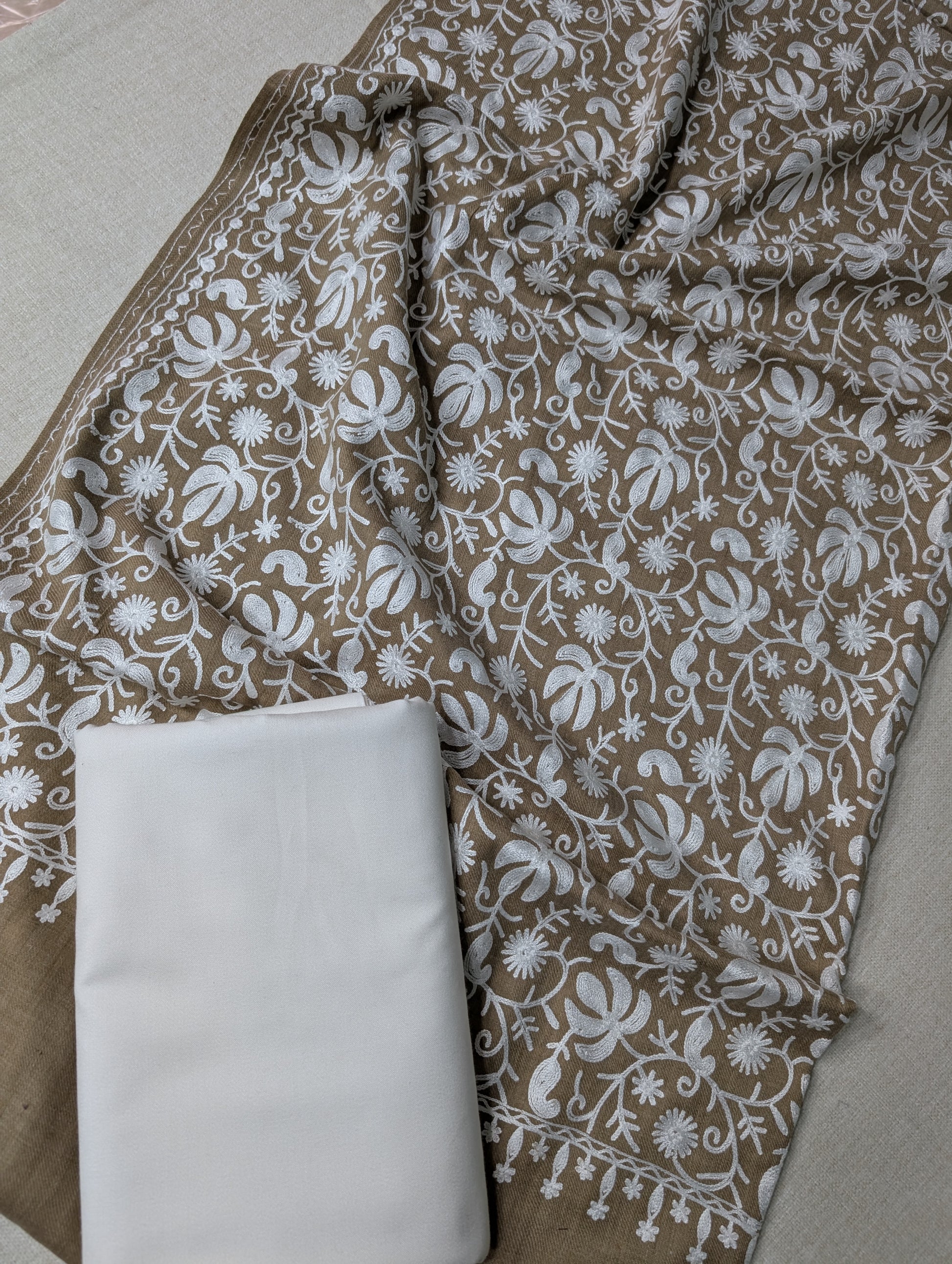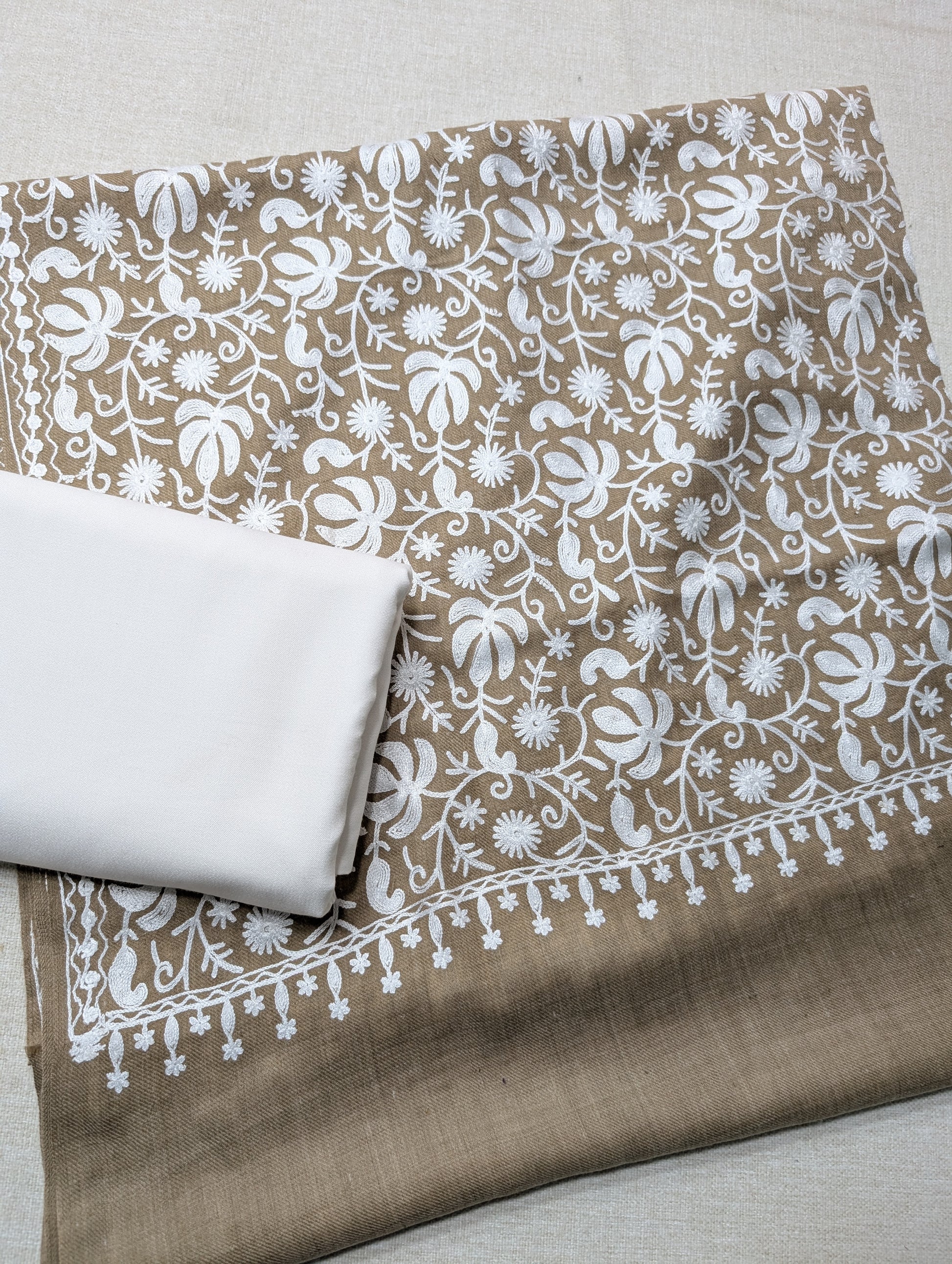 Pashmina 3 Piece Suit | Embroidered Shawl with Plain Suit Marina