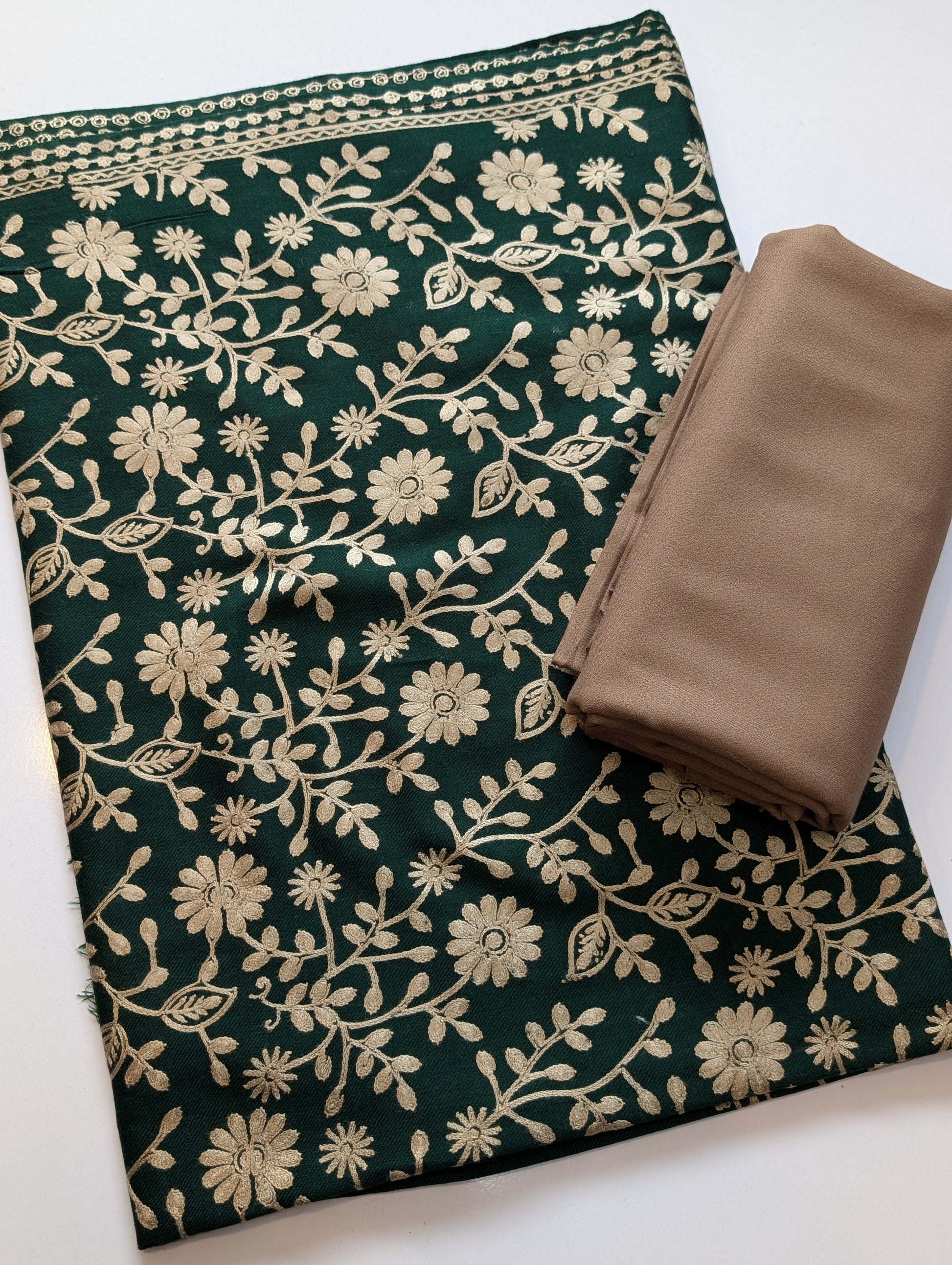 Pashmina 3 Piece Suit | Embroidered Shawl with Plain Suit Marina | Skin Green