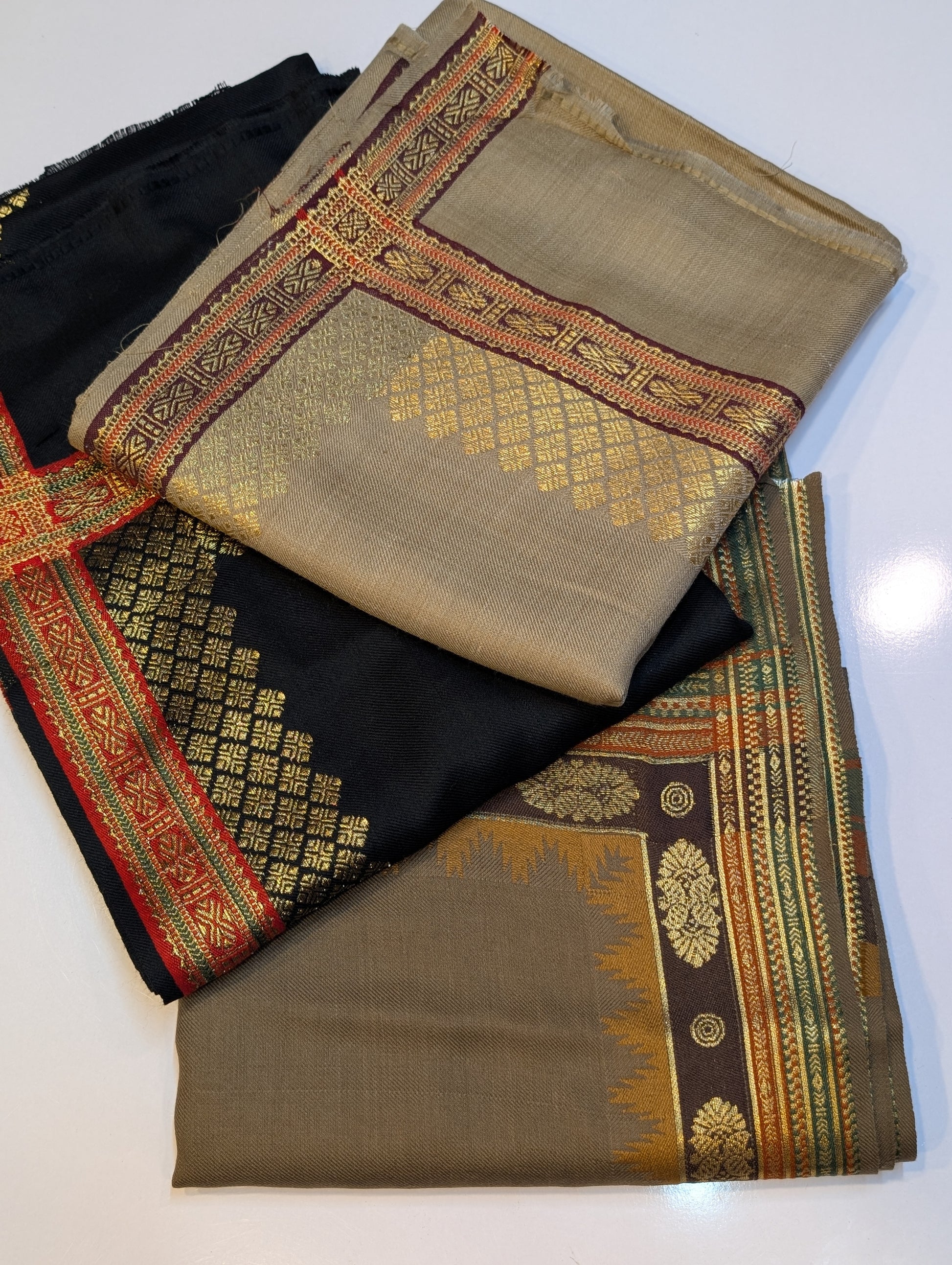 Pashmina Banarsi Border Shawl Full Length | Dark Skin