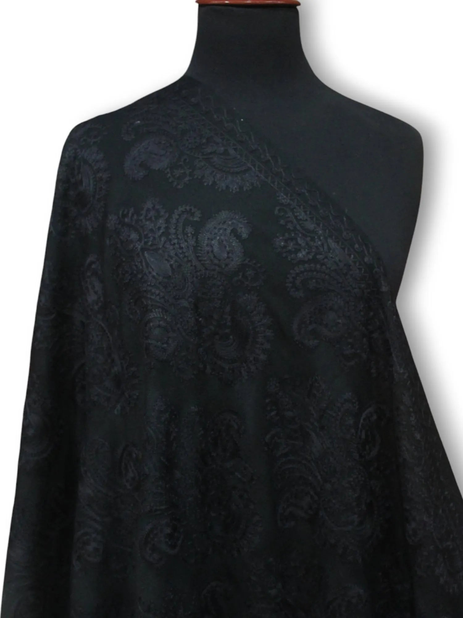 Pashmina Embroidered Shawl | Kashmiri Aar Work Embroidery Perfect Gift in Sale Price Black