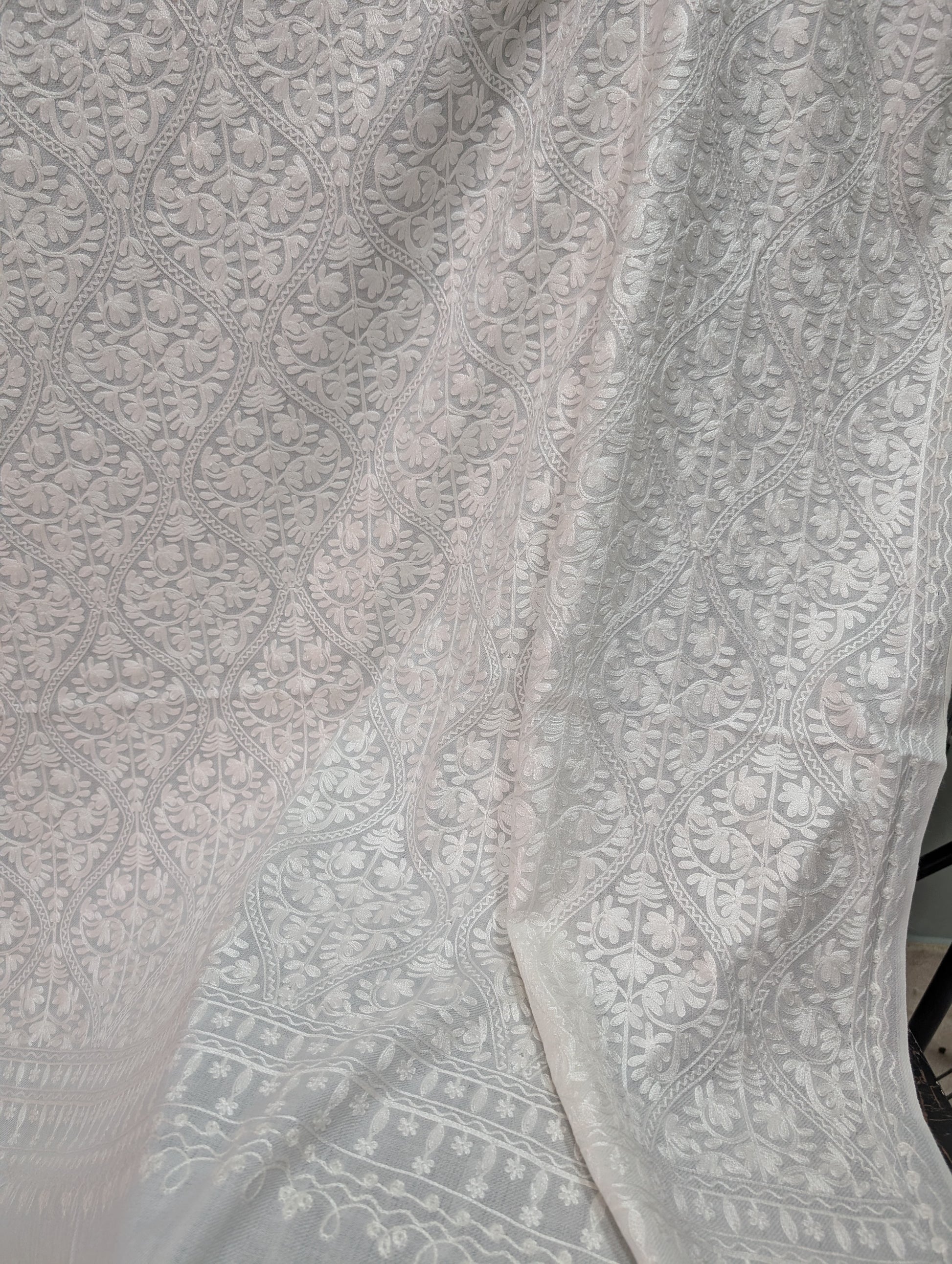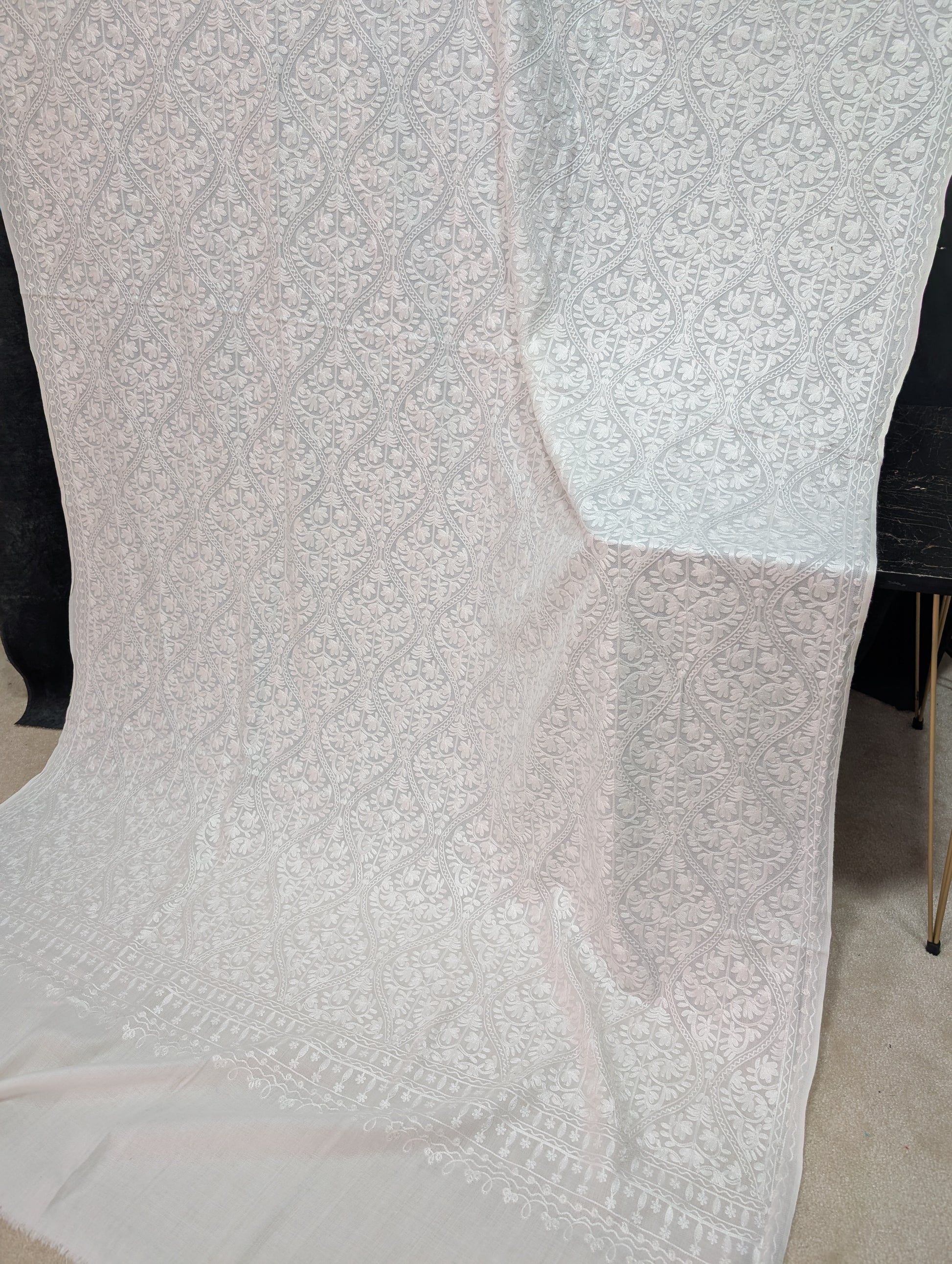 Pashmina Embroidered Shawl | Kashmiri Aar Work Embroidery Perfect Gift in Sale Price White Matka Design