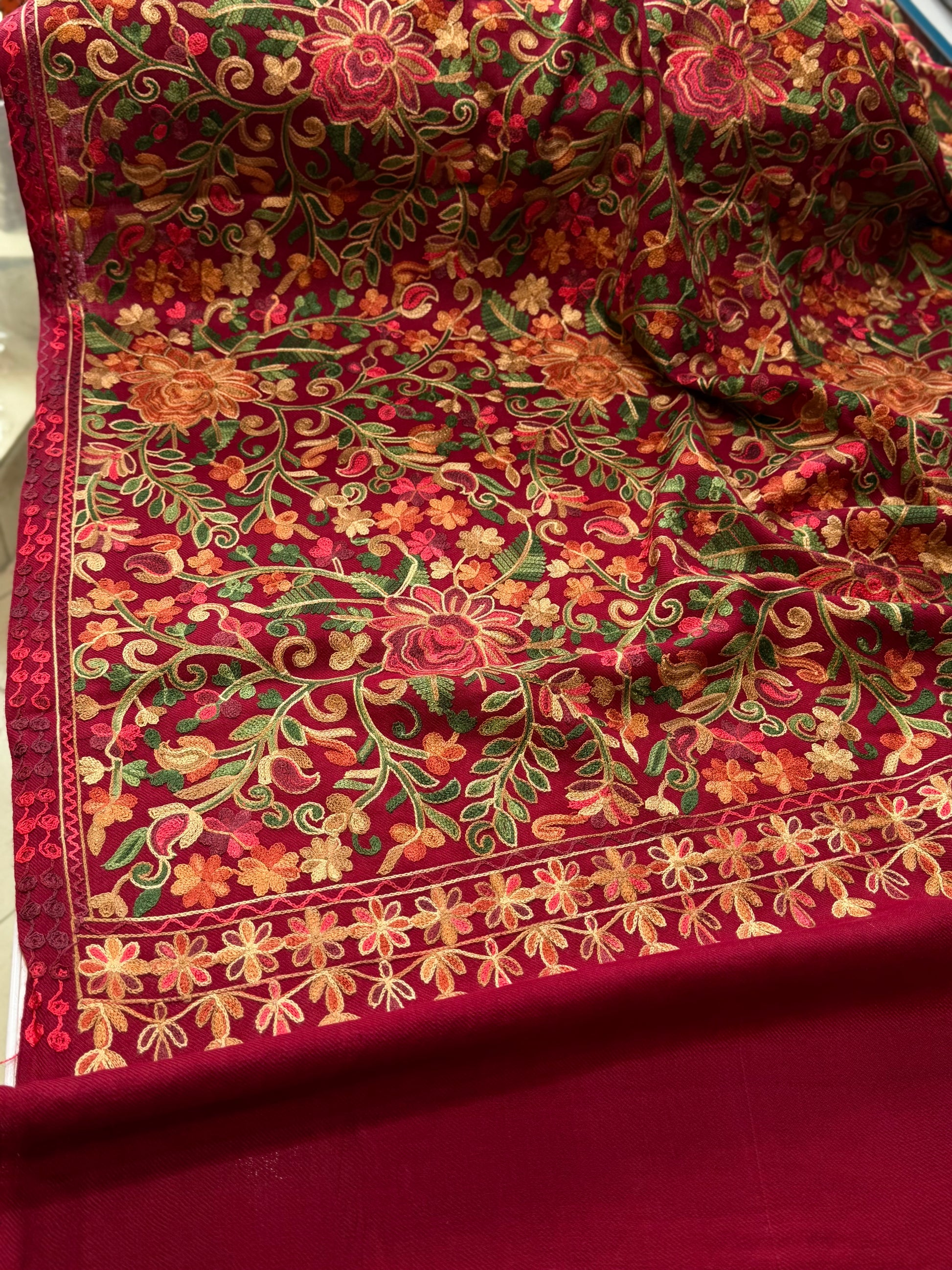 Pashmina Shawl Full Size | Kashmiri Embroidery | Maroon
