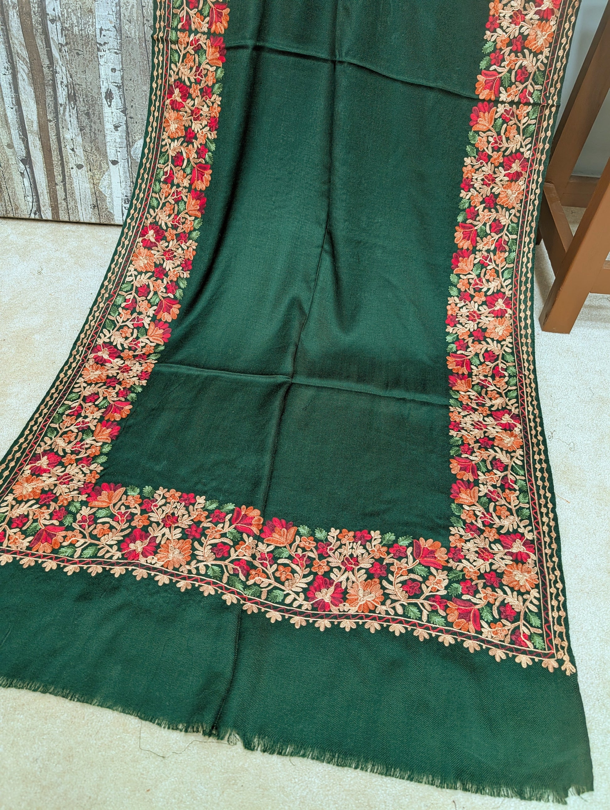 Pashmina Stole | Aari Border Embroidery 4 Side Border Perfect Gift | Dark Green