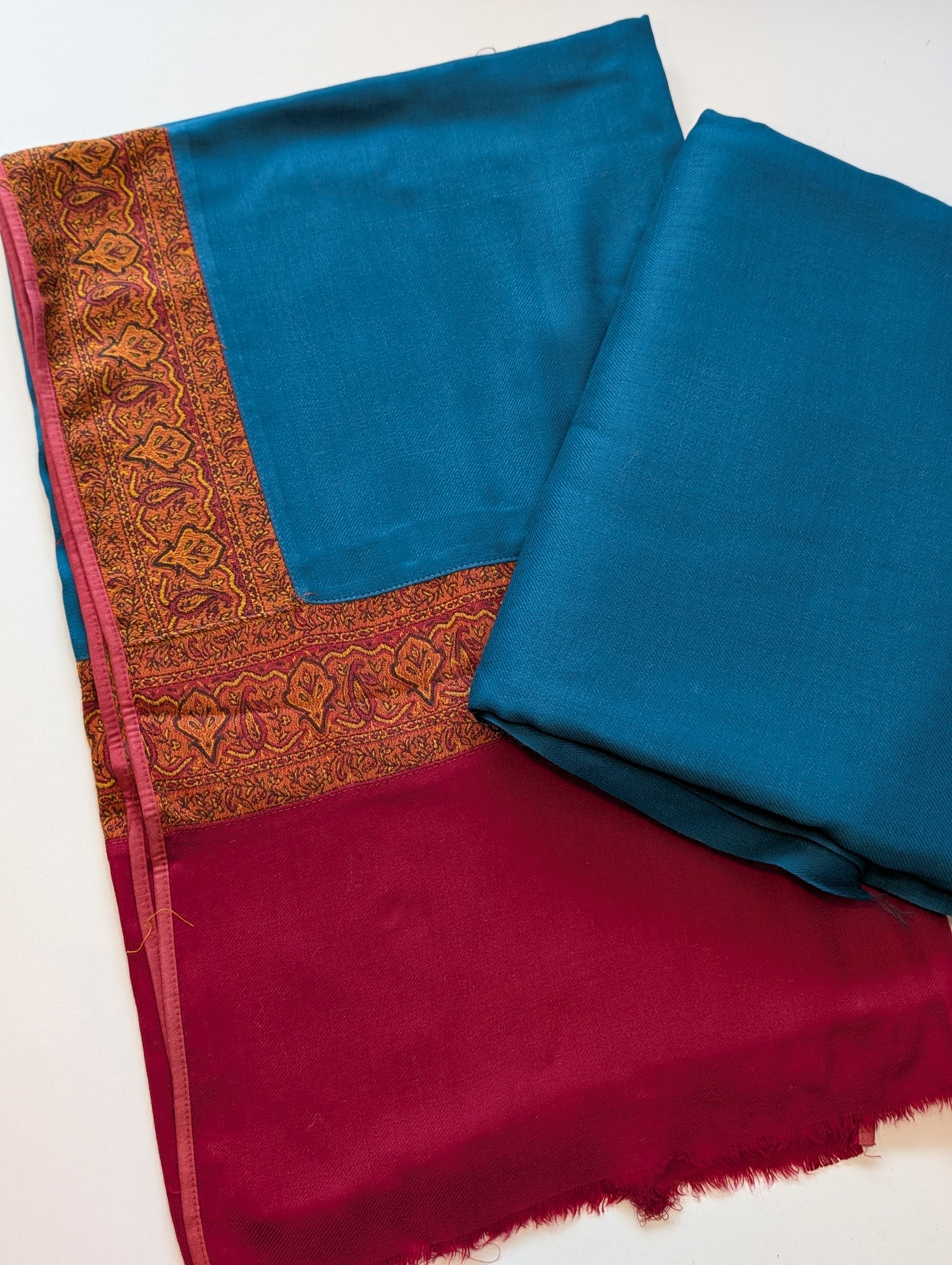 Pashmina Suit 3 Piece | Kani Border Shawl with Plain Suit | Dark Ferozi