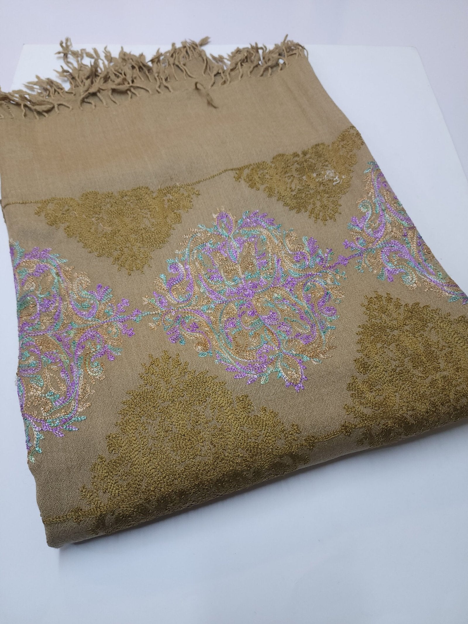 - Soft and Fine Pure Wool Shawl with Hand Embroidery