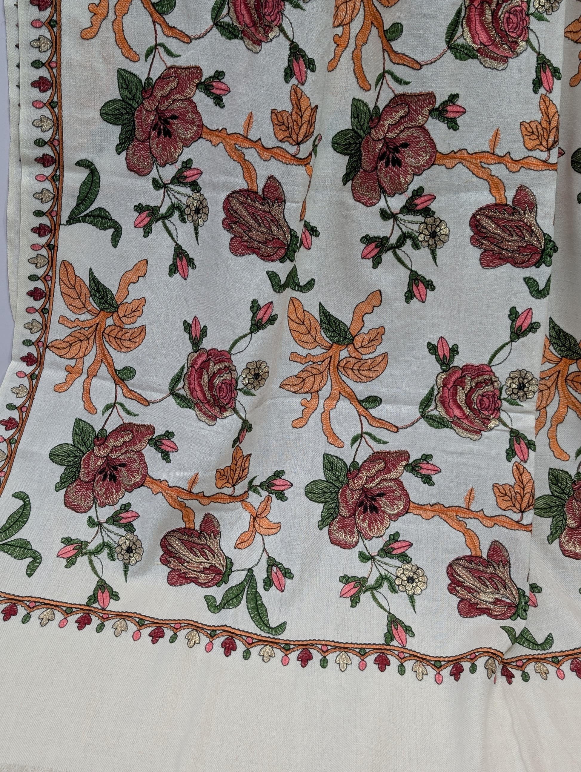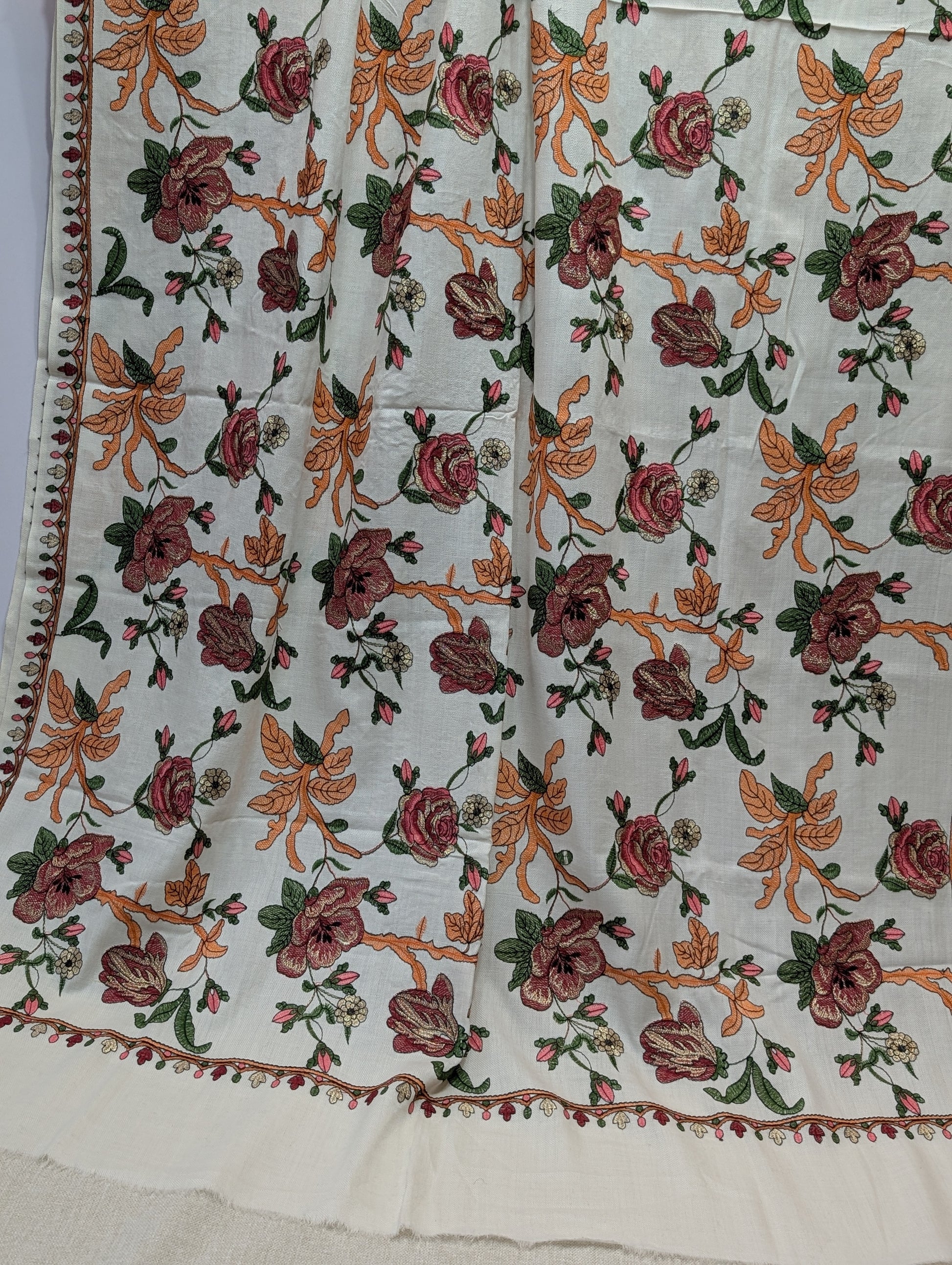 - Fine Pashmina Base and Kashmiri Machine Embroidery.